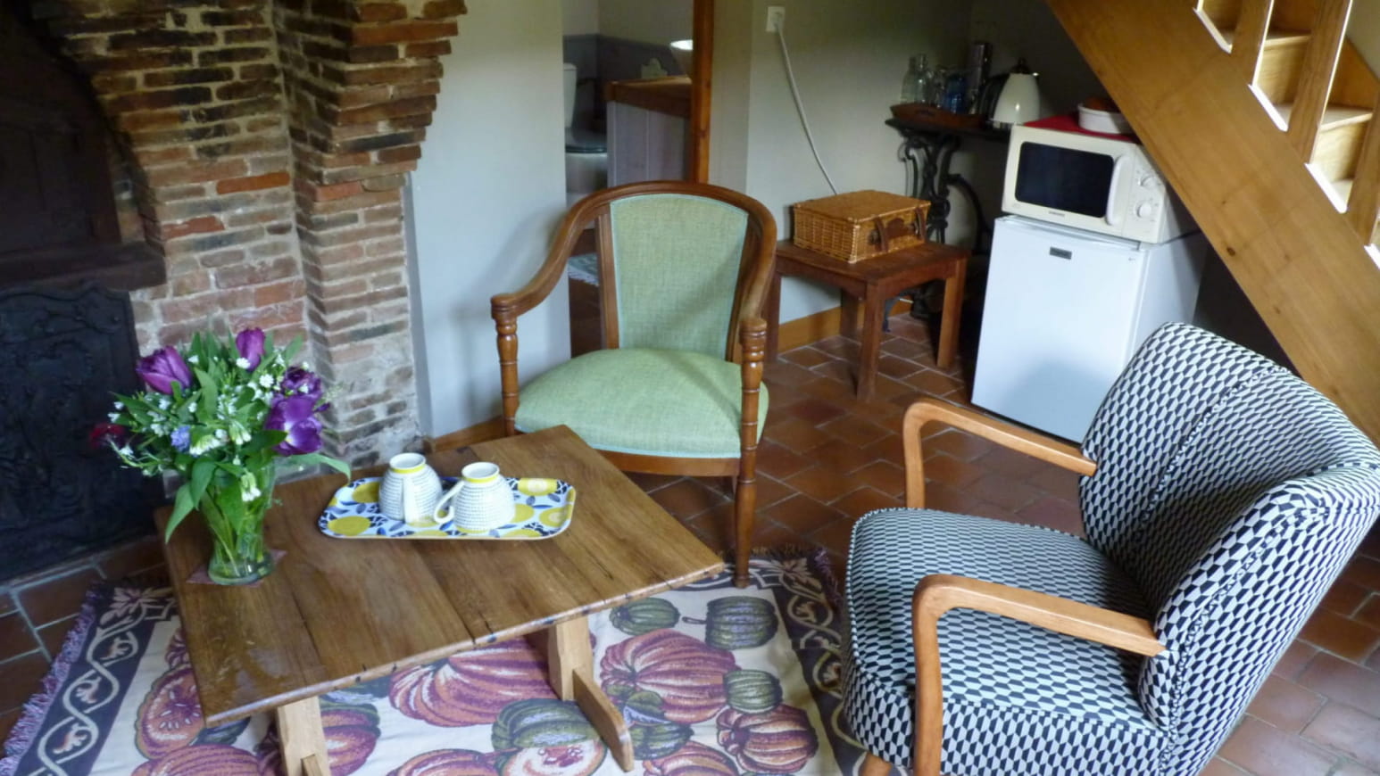 Depending on the number of guests, you can choose between two guest rooms. The Suite can accommodate up to 5 people. Comprising two bedrooms, it is located on the first floor of the owners' house. Couples and small families of 3 will find a small house in the garden. This is the Bread Oven Room. In all cases, you'll have a spacious room with a living room and kitchen area. Breakfast is provided, and pets are welcome. Book now!