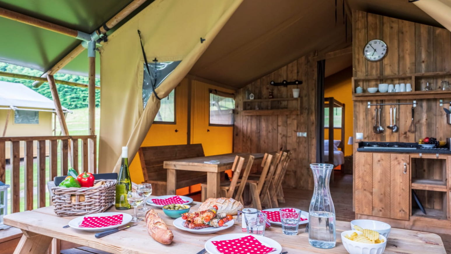 There’s also a snack bar, where you can enjoy pizzas, burgers, French fries and salads by the campsite’s pond.