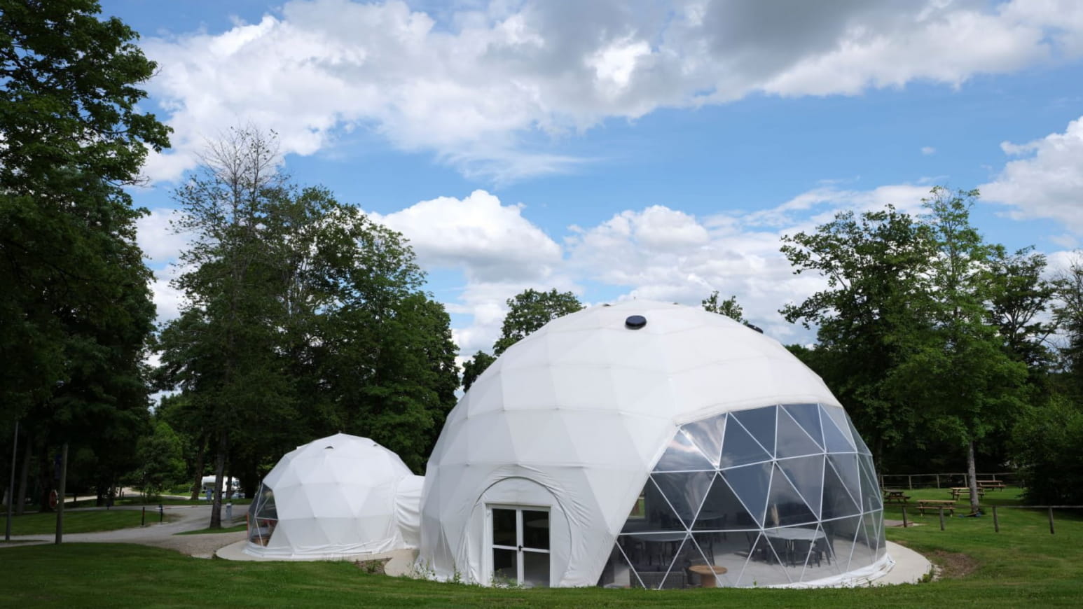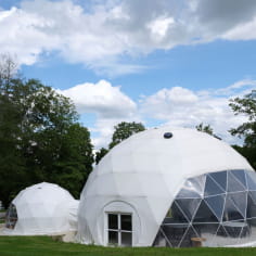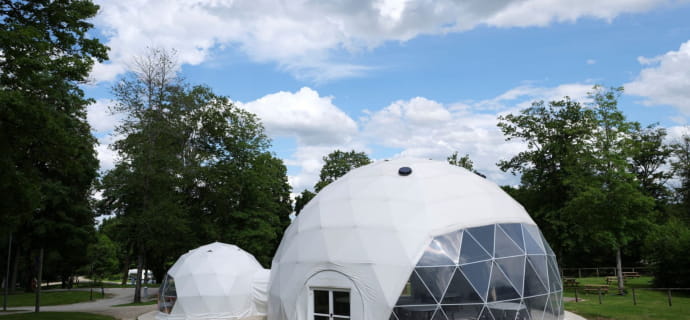 We look forward to seeing you at reception under our geodesic bubble, where you can meet us and discover our local produce. In the larger part of the bubble, you’ll have the chance to read a few books or play a board game with family or friends.