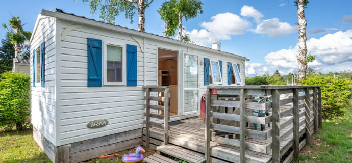 The estate offers a wide choice of accommodation to suit all tastes, including cottages, self-catering cottages and traditional pitches. For family vacations, discover our mobile homes designed for 2 adults and 2 children. These mobile homes are equipped with a terrace with table and chairs for your moments of relaxation.
