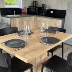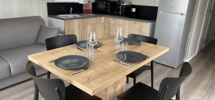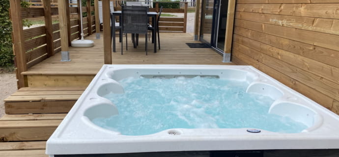 By opting for a mobiwood, you’ll enjoy all the comfort of a fully-equipped mobile home with the charm of a wood finish. Suitable for up to 4 people, this 36 m2 accommodation includes 2 fully-equipped bedrooms. 1 large double bed and 2 single beds are at your disposal. Finally, for your moments of well-being, you can take advantage of the private Jacuzzi and a large terrace.