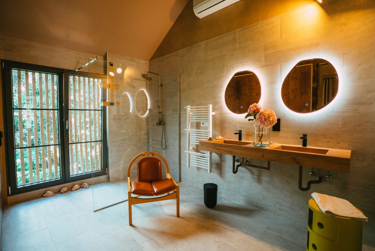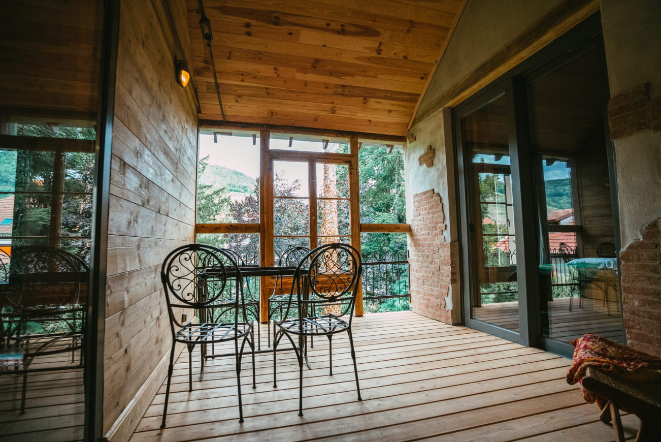 This charming lodge offers all the comforts of a luxury hotel. The 90m² of accommodation offers you carefully appointed living spaces, with a bathroom, fully-equipped kitchen, dining area and relaxation areas. Relax on the terrace with its breathtaking views of the Alsace vineyards and Vosges mountains, enjoy a delicious dinner, or simply lose yourself in your own thoughts! From the windows of your lodge, nature will offer you a marvellous spectacle!