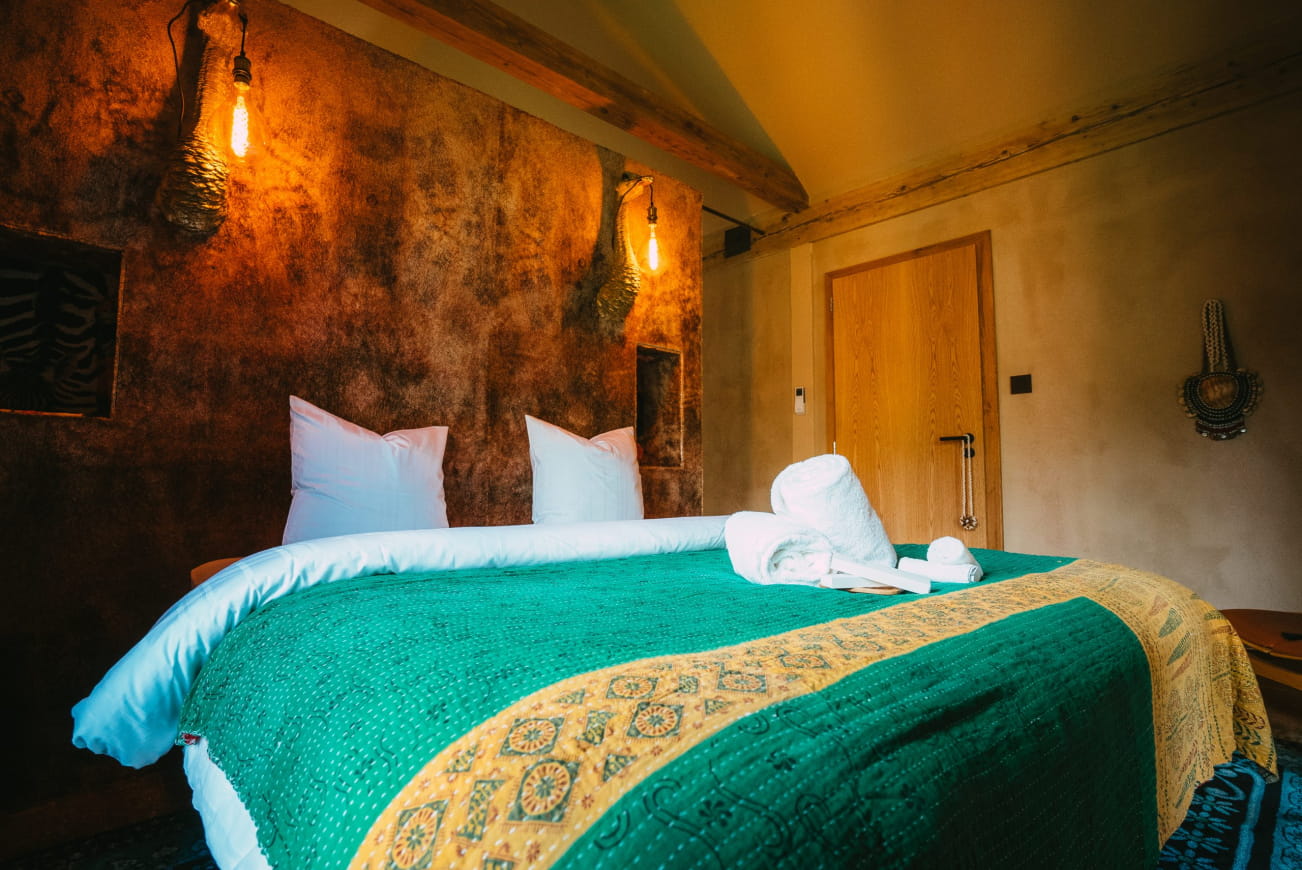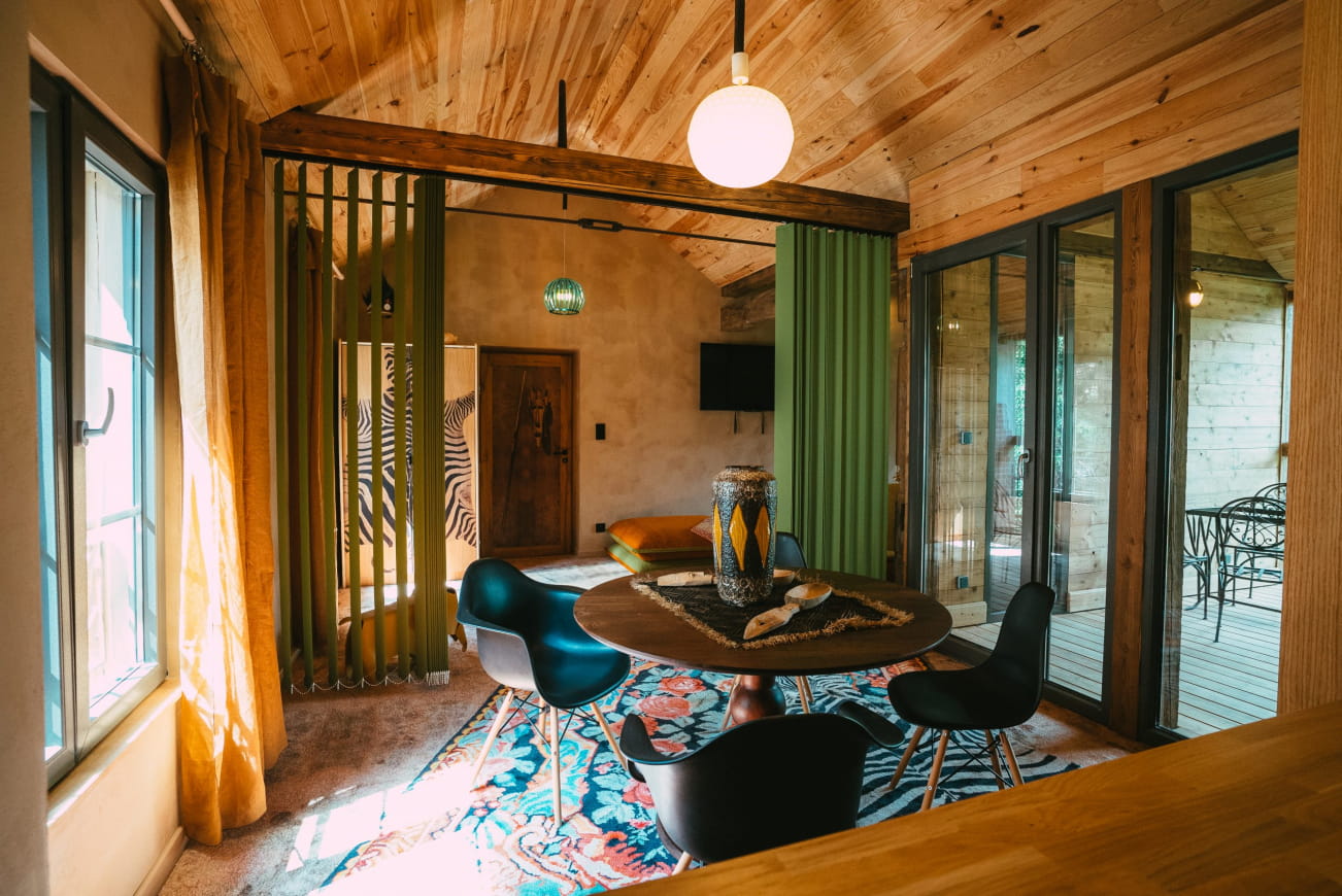 A trip to Africa on the Alsace Wine Route… Yes, it’s possible at the Domaine Bohème safari lodge! Located in Guebwiller, in a peaceful setting at the foot of the Grand Ballon, this charming accommodation invites you to enjoy an exceptional escape in an upscale, atypical setting. Embark immediately for African lands, in a warm, colorful and authentic atmosphere!