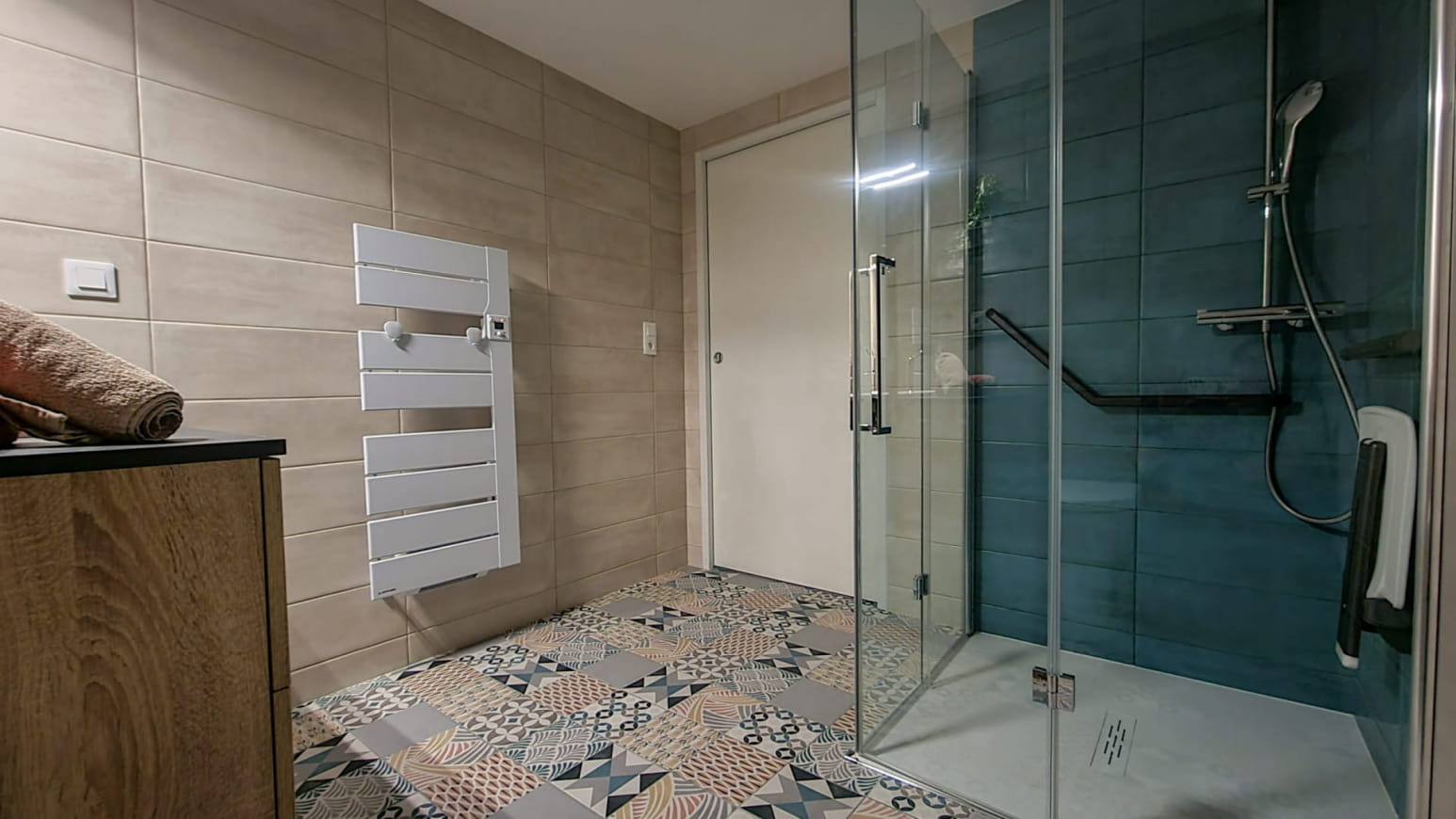 The interior of the gîte has been meticulously furnished to ensure a comfortable stay. Fully-equipped kitchen, living room, private bathroom, separate toilet, laundry room, Wifi, as well as a separate entrance for disabled guests… Everything is here to make your daily life as comfortable as possible.