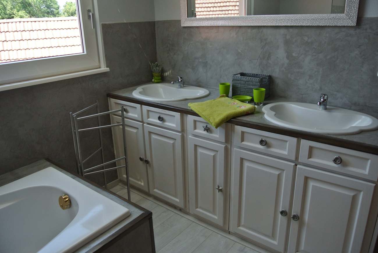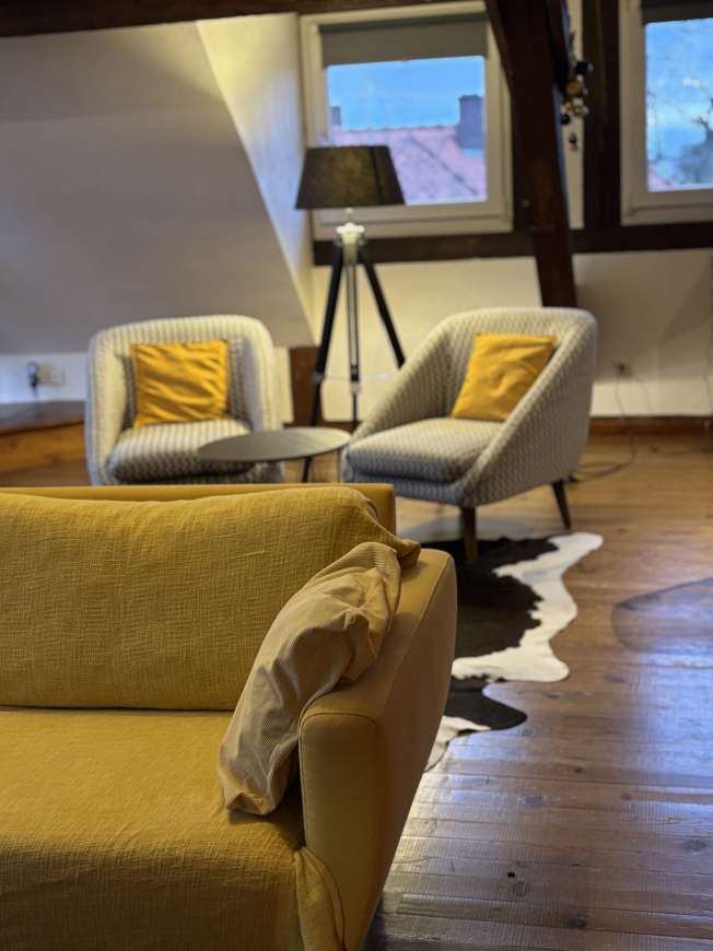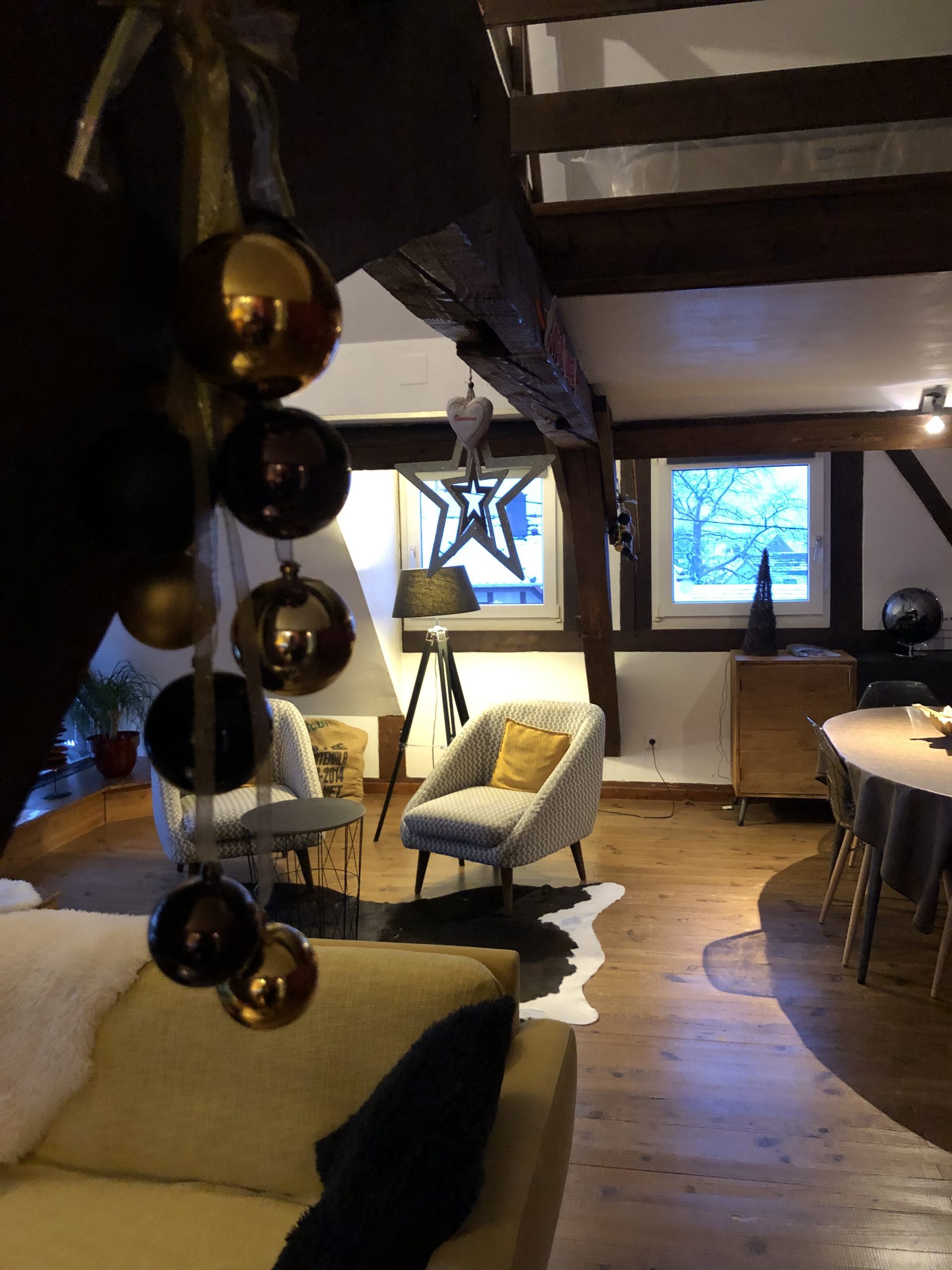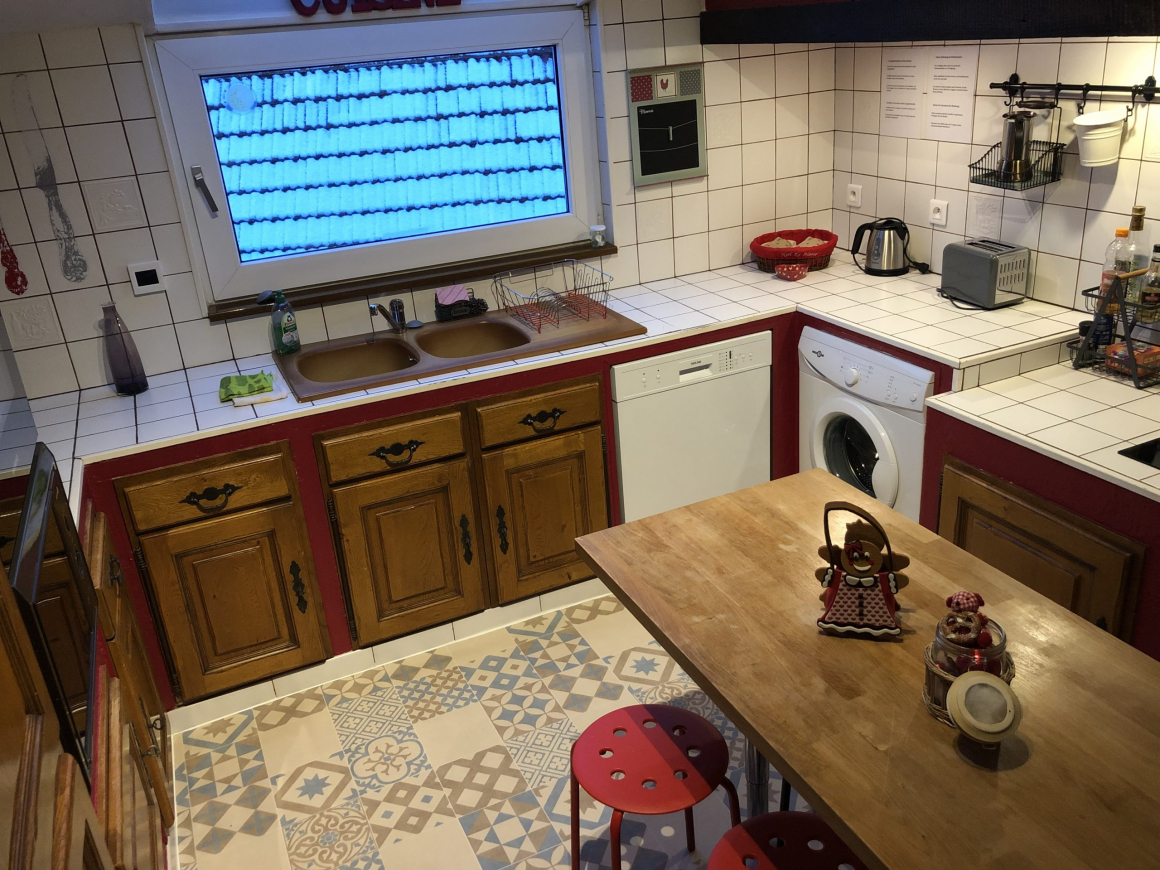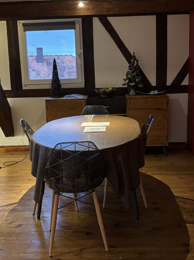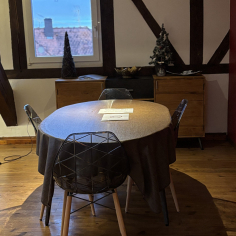 Fully equipped and furnished with care, this 100 m² gîte can accommodate up to 4 people. You’ll find 2 bedrooms, 2 bathrooms, a modern kitchen, a welcoming living room and a private terrace ideal for enjoying the warm weather. The typical Alsatian setting, with its half-timbering and warm atmosphere, invites you to relax after a day full of discoveries.