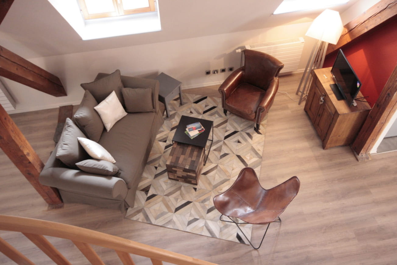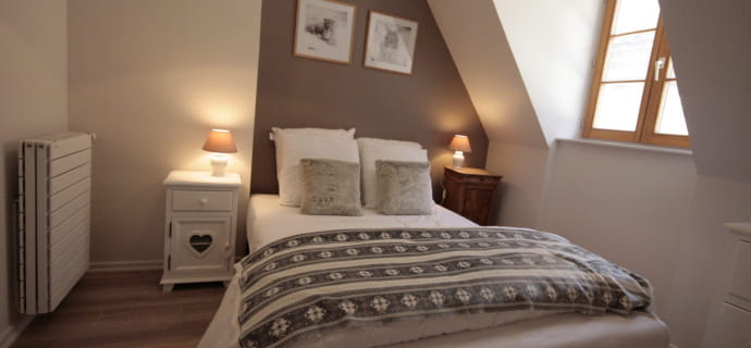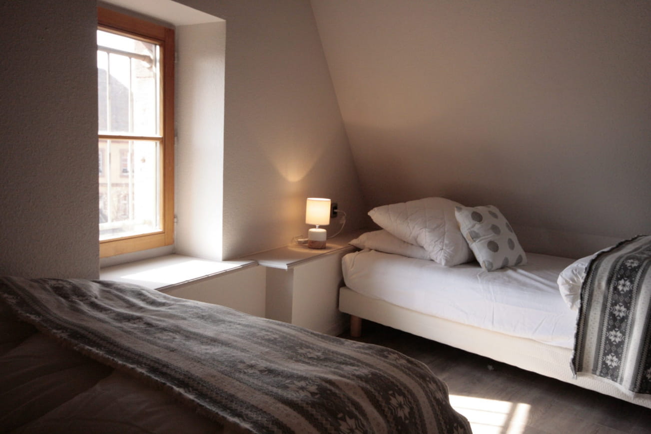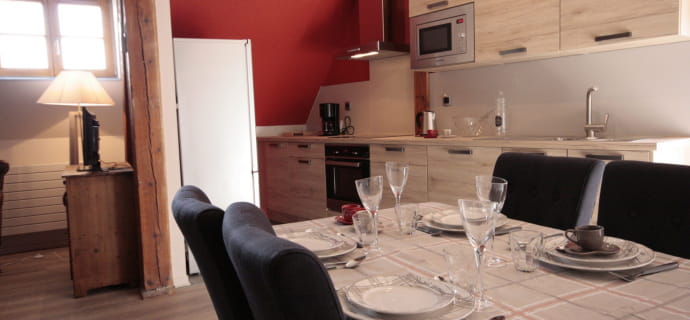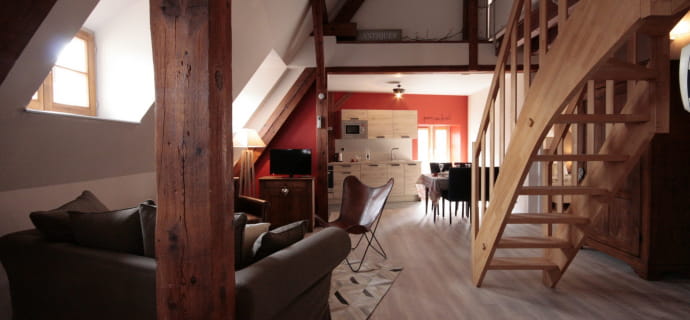 Le Beraweka offers a cosy, well-equipped space for your family stay in the center of Colmar. A blend of tradition and modernity, it has been entirely designed to immerse you in a cocooning atmosphere. It includes two bedrooms, one of which is for parents, the other with two single beds. In the relaxation area, a sofa bed can accommodate two additional guests. There’s also a large living room with a fully-equipped open kitchen. Upstairs, a private attic gym with exercise bike and multifunctional equipment.