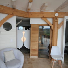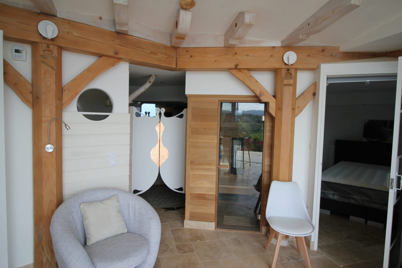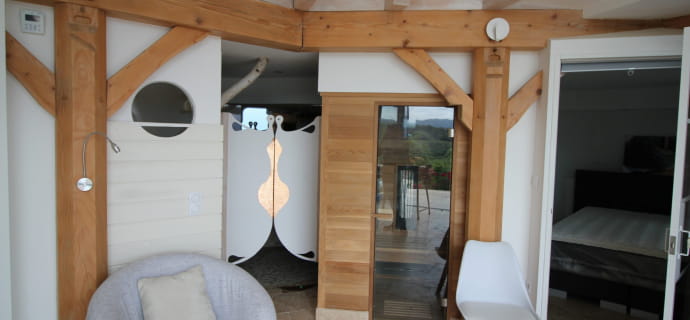 You'll never be bored at the Gîte de la Tanière Panoramic des Jardins! The living room, great room and kitchen are all great places to be. The bathroom, with its Italian-style shower, heat recovery system and multi-jet column, is sure to refresh you. And at the end of the day, take some time out in the private therapeutic sauna, the perfect place to recharge your batteries.