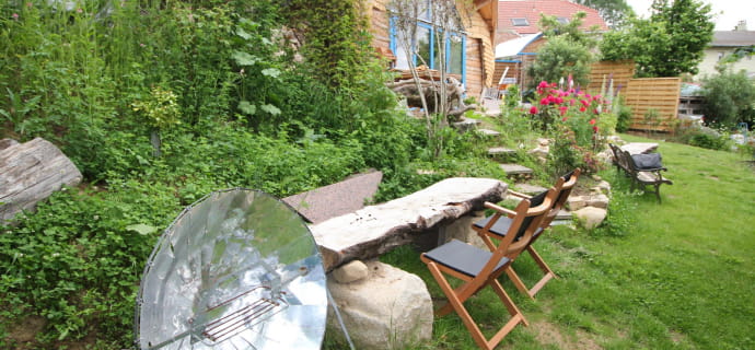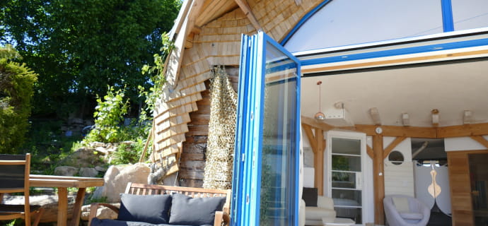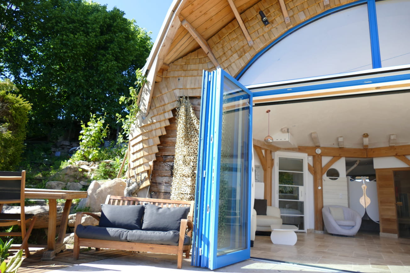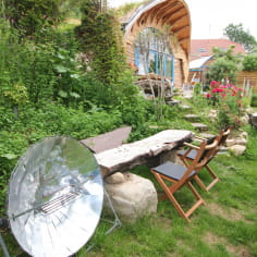 This characterful house with its bioclimatic design and 3 épis comfort can accommodate up to 4 people. Outside, you'll appreciate the large private terrace and splendid garden of the owners, who have a particular affection for plants. At midday, enjoy a picnic or barbecue in the shade of the trees, or relax by the natural pool.