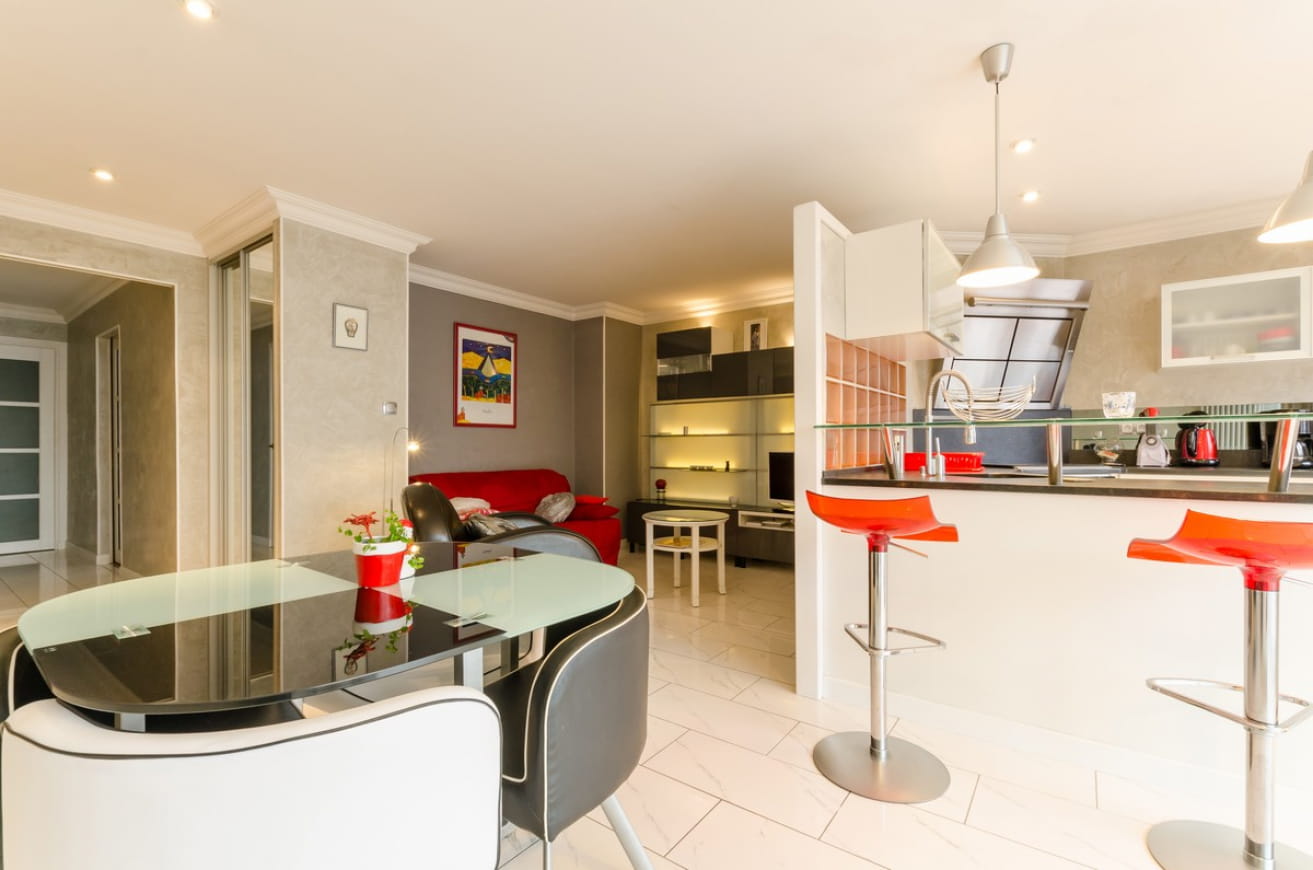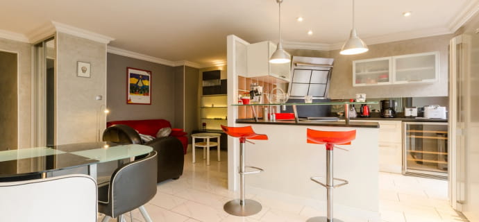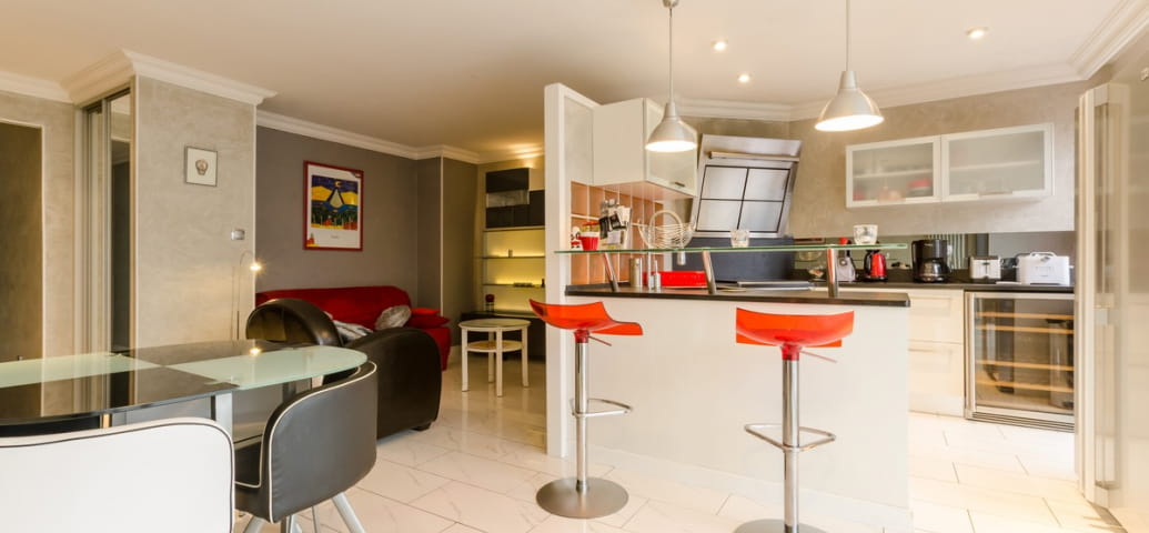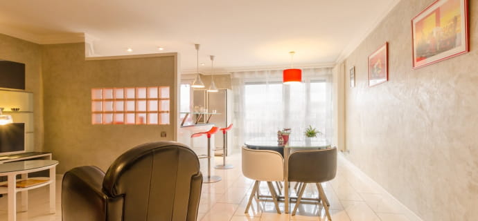 The 64 m² Le Gros Raisin apartment is on the 3rd floor of a secure building with janitor and elevator. The modern style of the apartment is striking from the moment you enter. The owners offer a warm welcome and hand over the apartment keys in a friendly atmosphere.