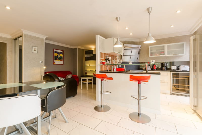 Once through the front door, you enter a contemporary world of designer furnishings. The spacious living area is cleverly arranged to harmonize intimacy and conviviality. Be seduced by this superb open kitchen with high-tech equipment that opens directly onto the dining area. At the end of the hallway, you'll arrive in the shower room with storage cupboards, a huge walk-in shower and a separate toilet.