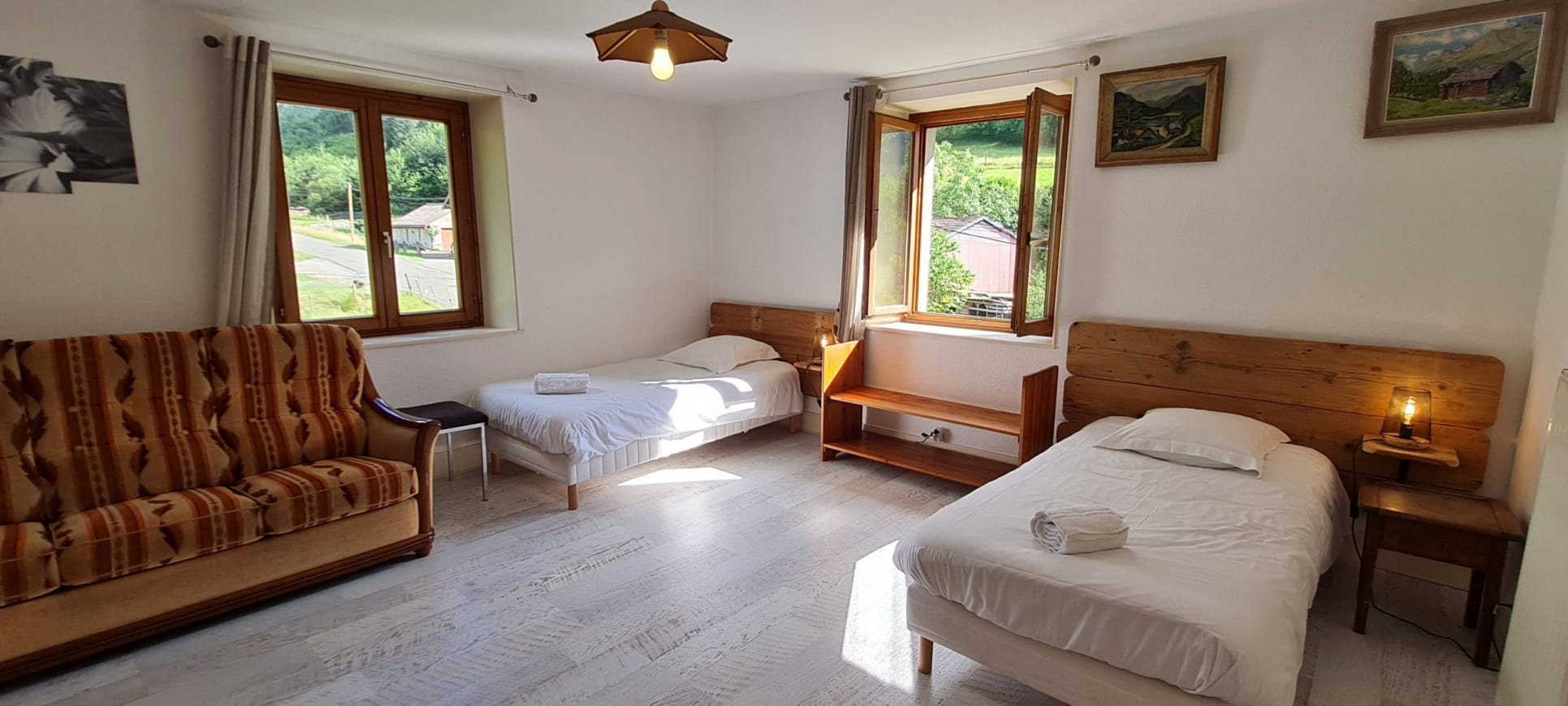 The Gîte La Marguerite is designed to comfortably accommodate up to 6 people for a minimum of 2 nights. The kitchen will surely seduce you with its spectacular view of the Hohneck and Gaschney mountains, and at the back of the house you’ll find a terrace with barbecue for your moments of relaxation. A permaculture vegetable garden is also available to enrich your meals, and bicycles with panniers are available for short errands.