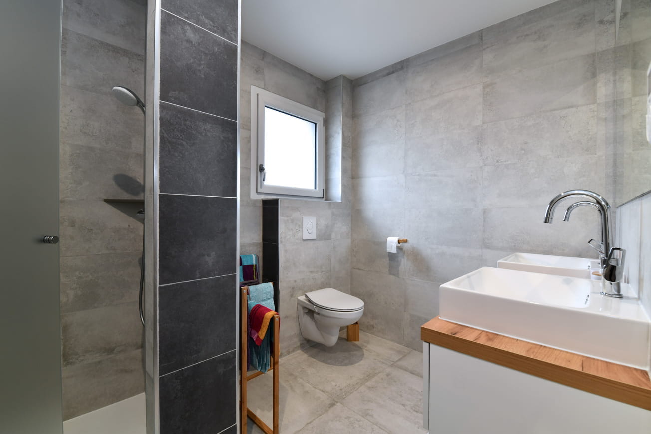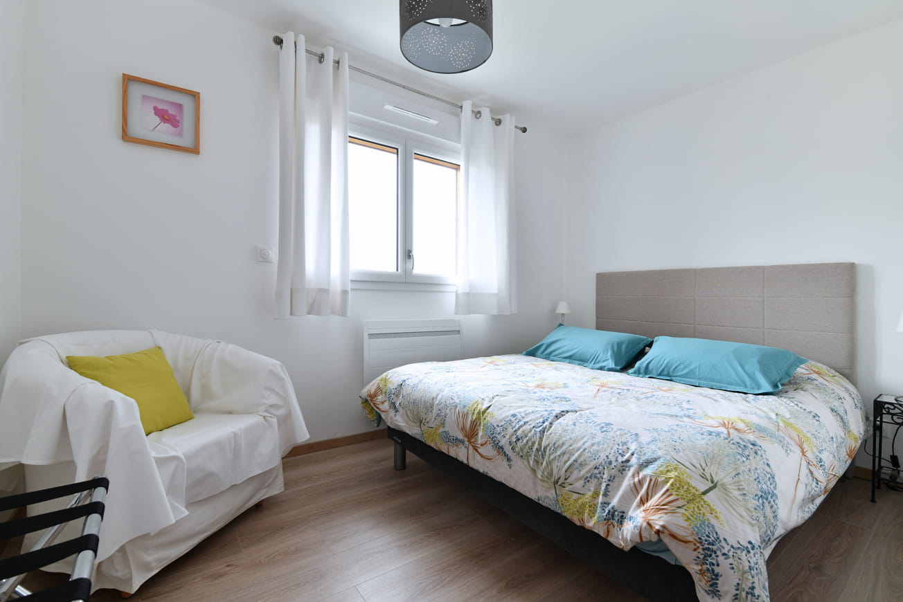 On the second floor, the large bedroom can be adapted to your needs, with 2 single beds (90×190) or 1 double bed on request. A 2nd bedroom with 1 double bed (160×200) is also available, with quality bedding and storage space, as well as a relaxation area for devouring your favorite book. A shower room with walk-in shower, double basin and WC also completes this upper floor. All carefully designed to ensure a comfortable and enjoyable stay.