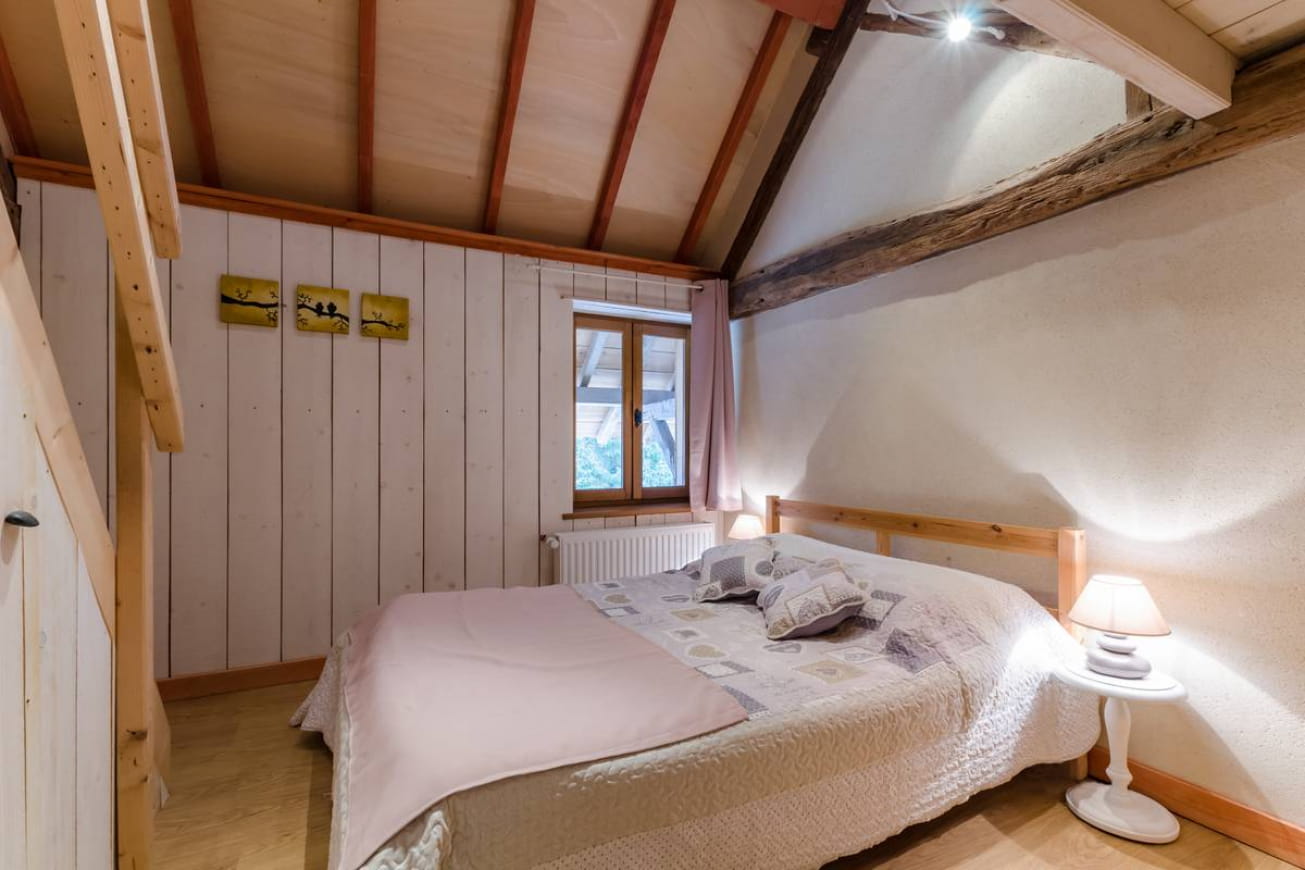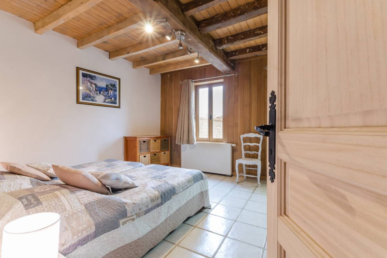 There are 6 bedrooms, 2 of which are upstairs with splendid views. The master bedrooms each feature a double bed. A crib can also be added. The gîte also offers triple rooms with an additional single bed. A mezzanine is equipped with an armchair and a convertible sofa that can be transformed into an additional sleeping area.