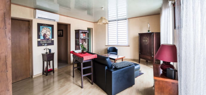 This 78 m2 apartment with its modern, trendy decor is located on the first floor of the former hotel restaurant.
