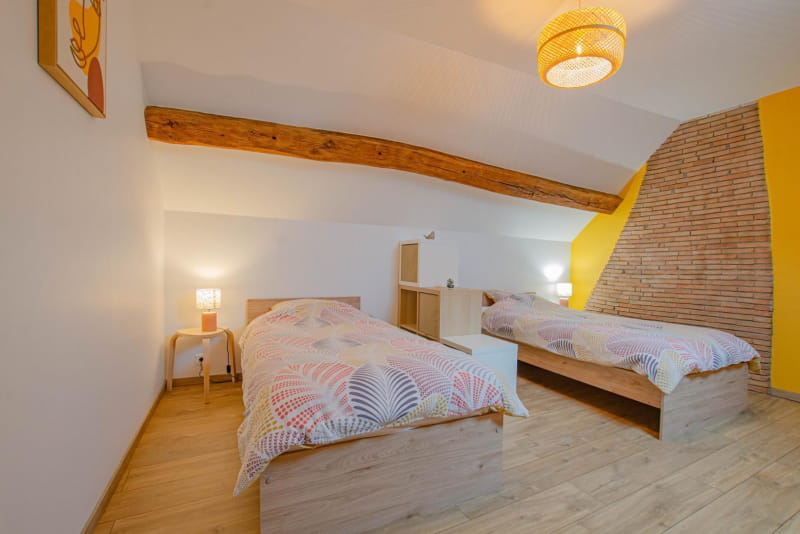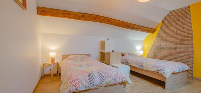 On the first floor, you’ll find a living room with a sitting area, and an open-plan kitchen equipped with a dining area. On a half-level, you’ll have access to a double bedroom, a shower room with shower and washbasin, and a separate toilet. On the 1st floor, you’ll find a mezzanine sitting area, a double bedroom and a twin bedroom. Outside, you’ll enjoy a private terrace with garden furniture, parasol, barbecue and deckchairs, as well as shared parking. Heating and electricity are included in the price (subject to normal consumption, a supplement may be requested), beds are made on arrival and household linen is included.