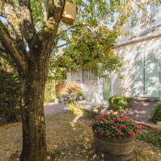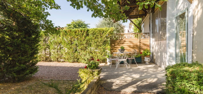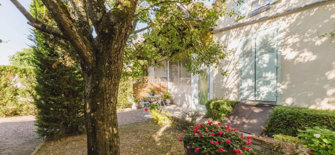 The bedroom is a cozy little cocoon with a double bed and storage space. In the evening, relax your muscles with a fragrant soak in the bath. In the morning, open the large window and let the first rays of sunshine invade the space. Enjoy a cup of coffee while admiring the green landscape outside. Set yourself up for the day with positive vibes, as the pretty medieval city of Troyes awaits you to reveal all its charm!