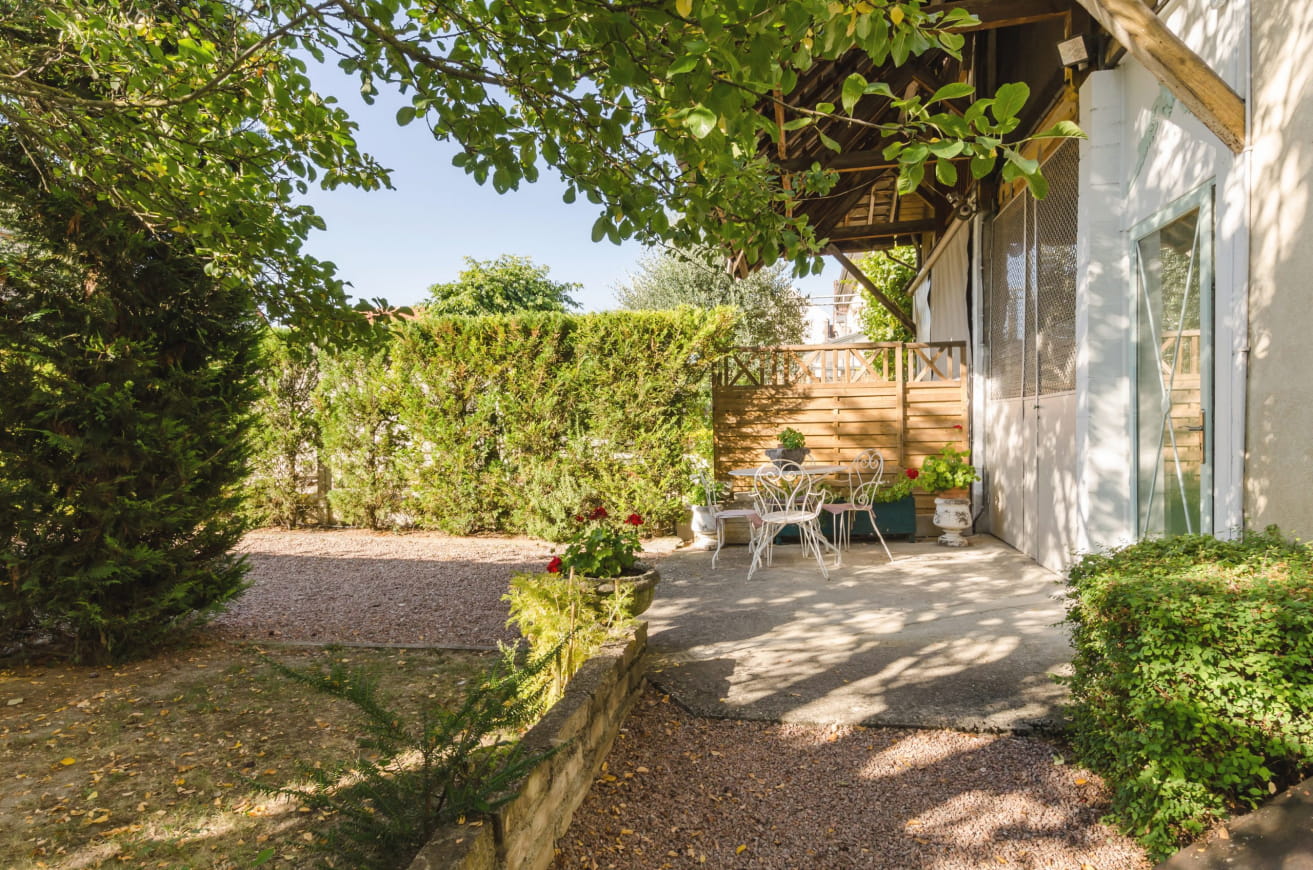 - A garden area has been laid out for pleasant outdoor moments.