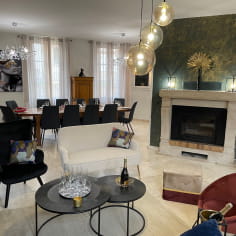 Perfect for group stays, this spacious house comprises a first floor and an upper floor. With 5 bedrooms and 5 bathrooms, each space has been carefully designed by the owners, offering a warm and elegant ambience.