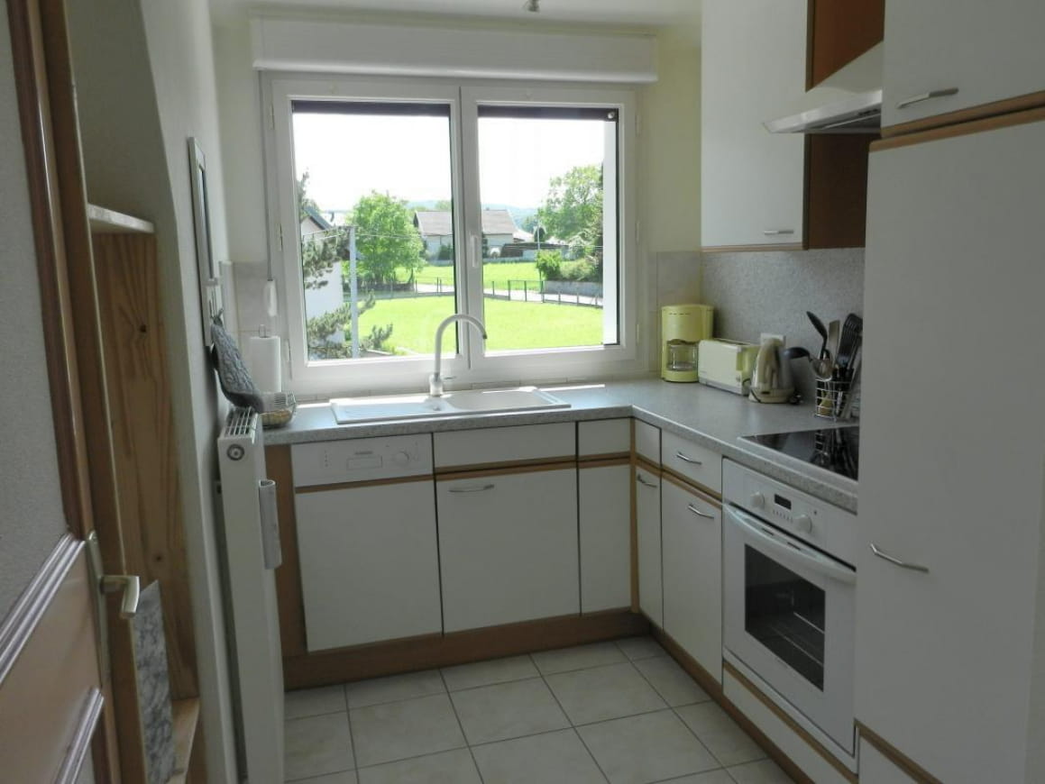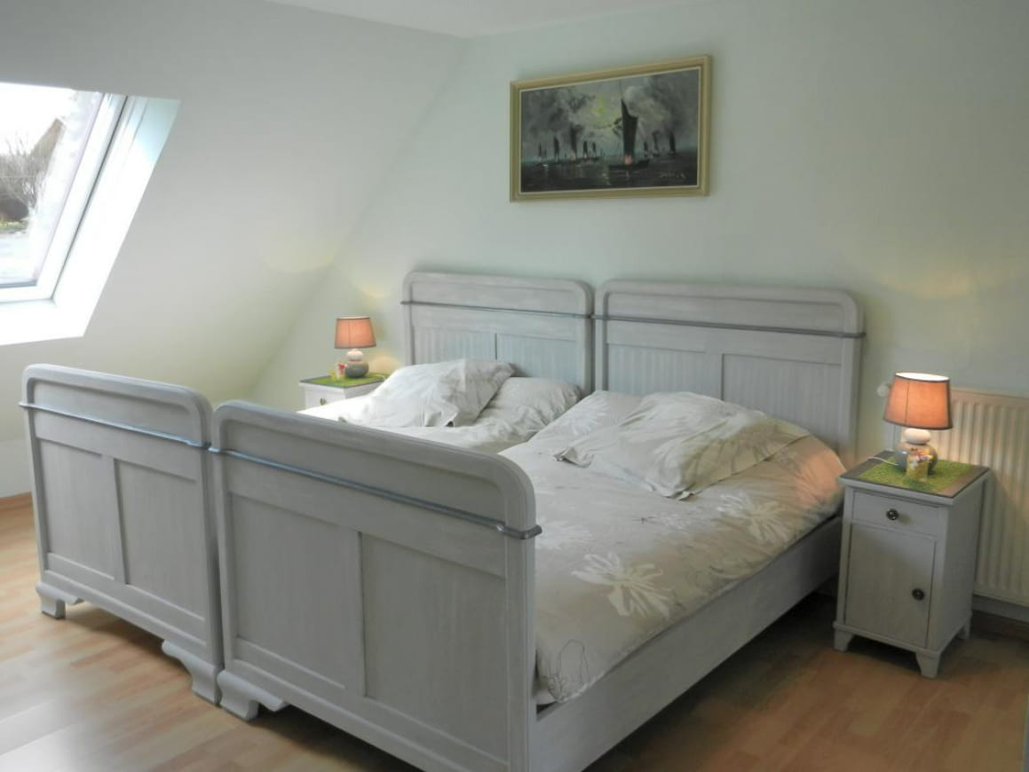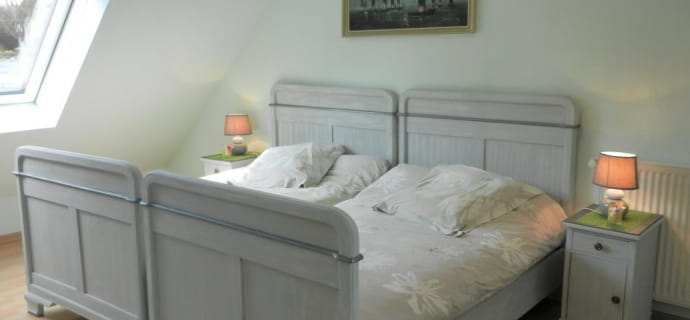 This gîte comprises: an entrance hall with independent access to the first floor, a living room with TV area, a fully-equipped kitchen (dishwasher, oven, fridge, coffee maker, toaster, etc.), a dining area in the adjoining room (microwave, freezer), a shower room, an independent toilet, a bedroom with two single beds and a cot and accessories, a bedroom with a single bed.