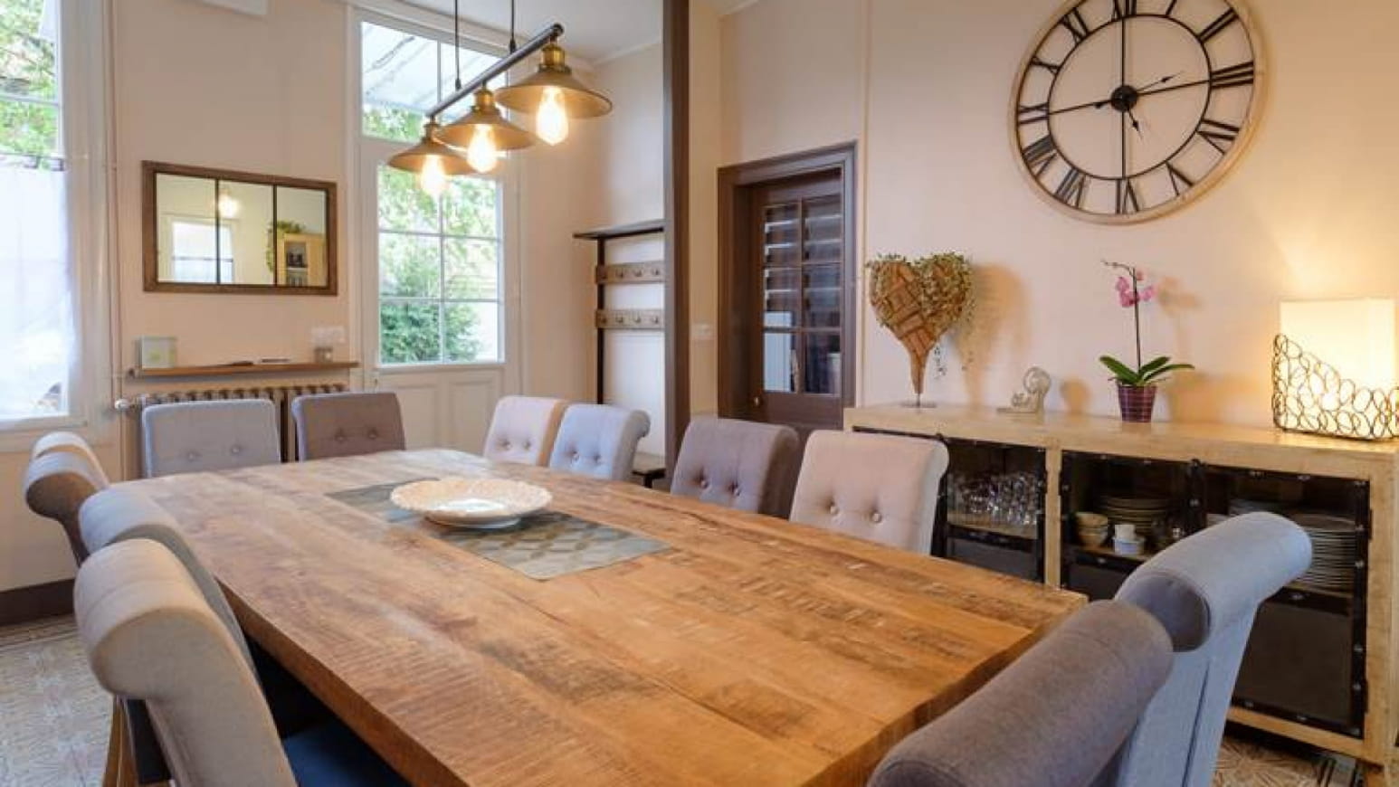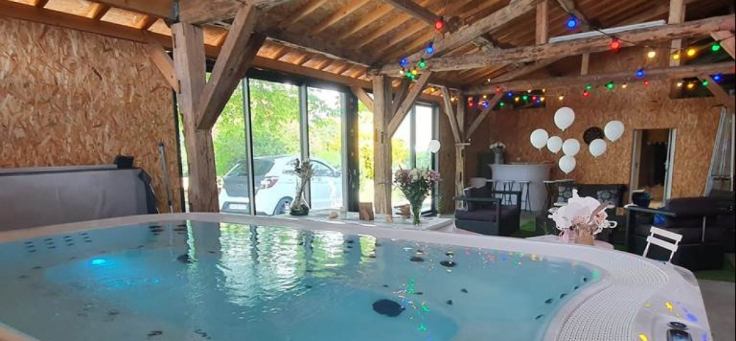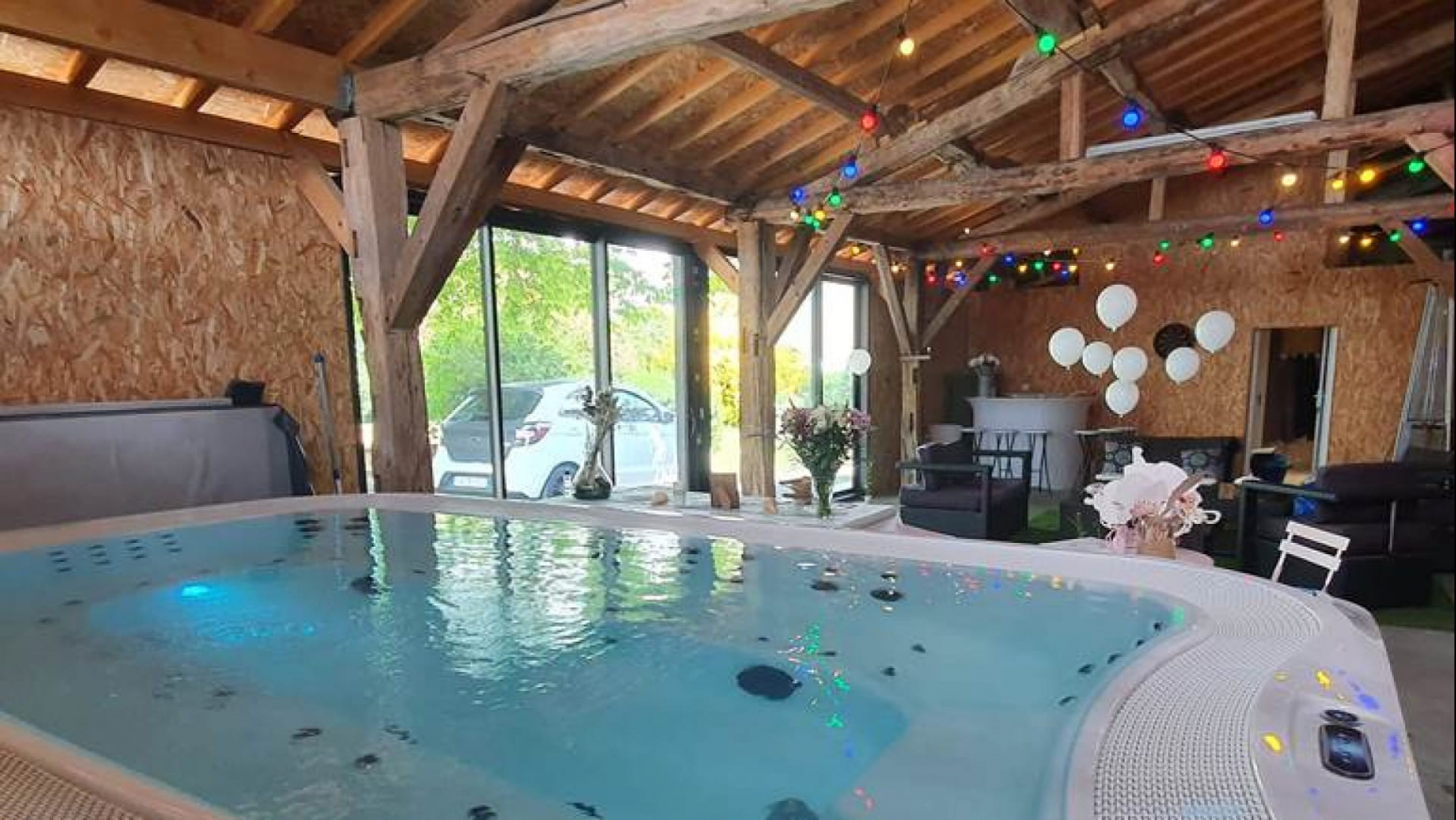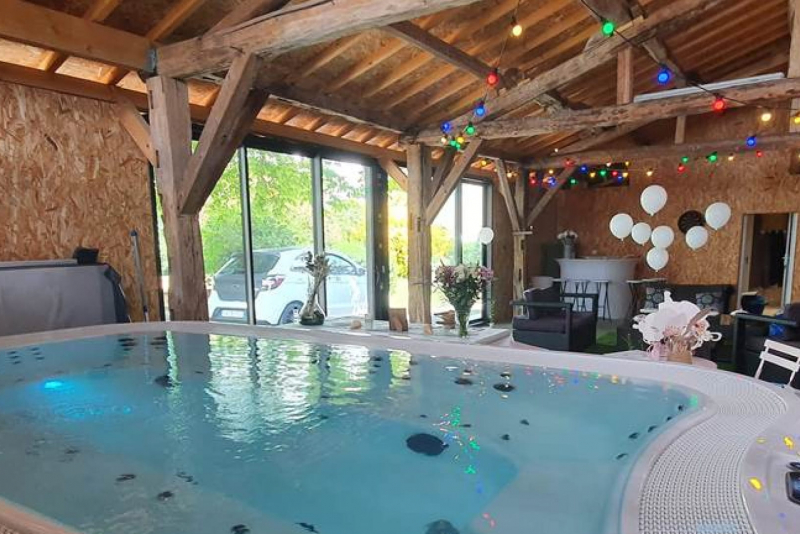 With 200 m² of living space and 2000 m² of enclosed land planted with trees, this gîte can easily accommodate 15 people. 6 bedrooms, 4 bathrooms and a wide range of activities await you for a relaxing yet recreational stay! The relaxation area with its 12-seater XXL Jacuzzi is perfect for relaxing with family or friends. And when it comes to leisure activities, you’ll find everything you need for a lively game of billiards, pétanque or table soccer.