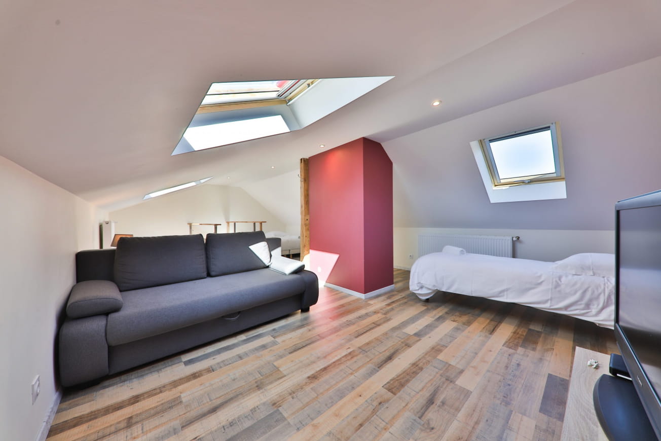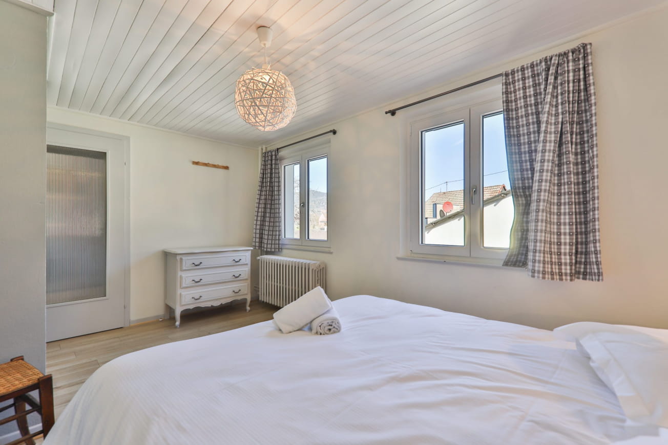 The 160 m² Villa du Petit Ballon is spread over 3 levels, with 4 comfortable bedrooms, 3 bathrooms, a fully-equipped kitchen and a large living room ... Warmed by wood, but lightened by light colors, the interior of the gîte creates a particularly soothing atmosphere. On the 1st floor, the 3 bedrooms offer magnificent views of Oberlauchen, Schnepfenried and Gaschney. The 4th bedroom, in the attic, will also delight children with its play area.