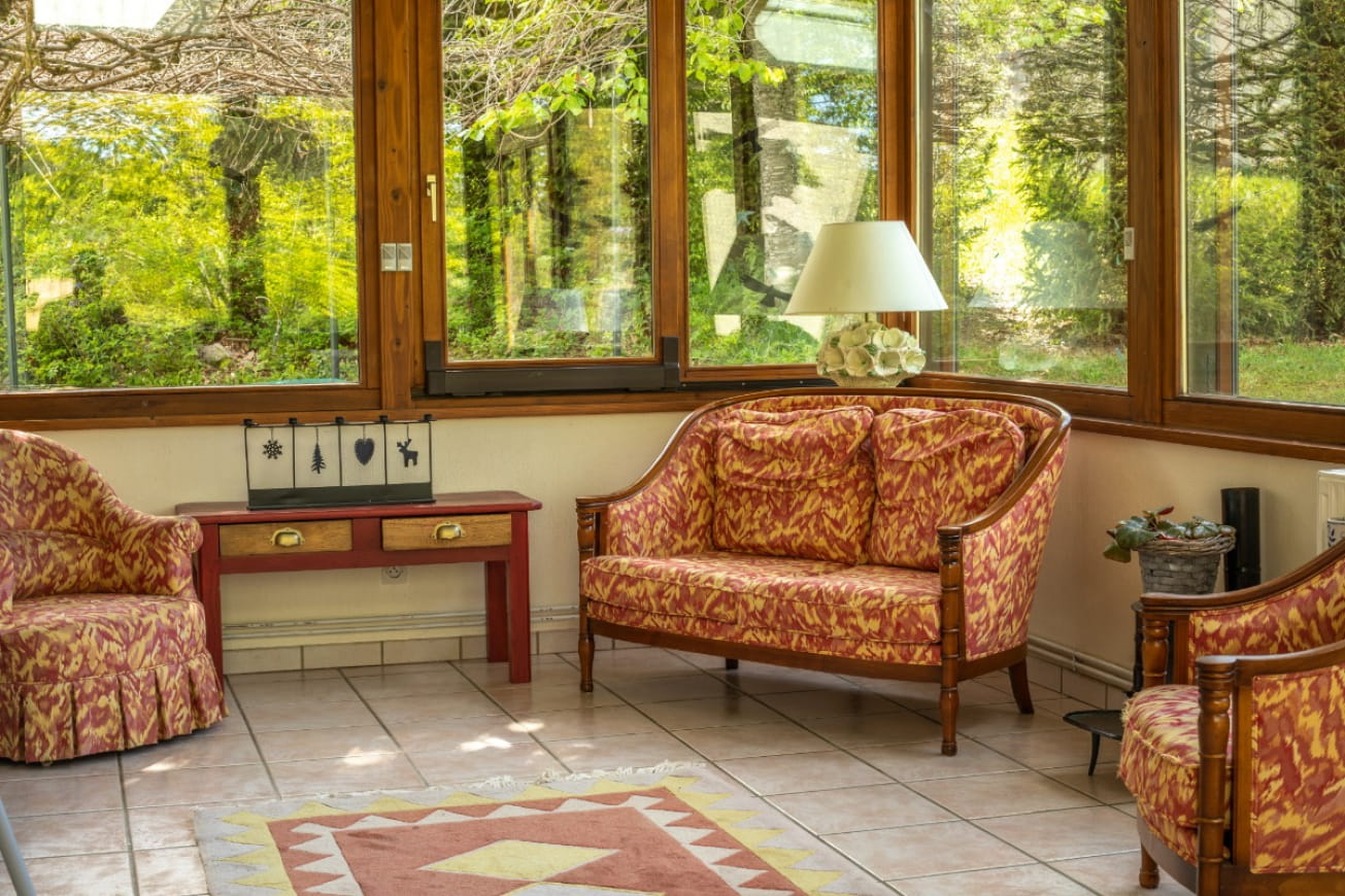 Glazed veranda opening onto shaded terrace, gardens, open spaces and vast lawns …_