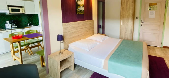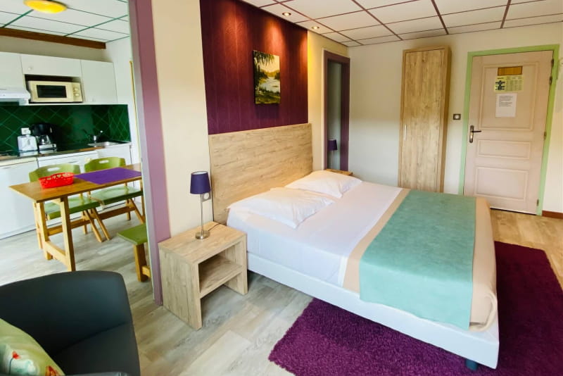 The comfort of Chalet la Combeauté’s rooms will complete your well-being. You’ll stay in a single, double, triple or even family room for up to 5 people, all offering superb views of the surrounding countryside. All rooms are equipped with TV, en-suite shower and kitchenette (oven, hob, fridge and crockery). Direct access to the pool and common areas from inside or outside. For those with a sweet tooth, an optional breakfast is available to get your day off to a good start.