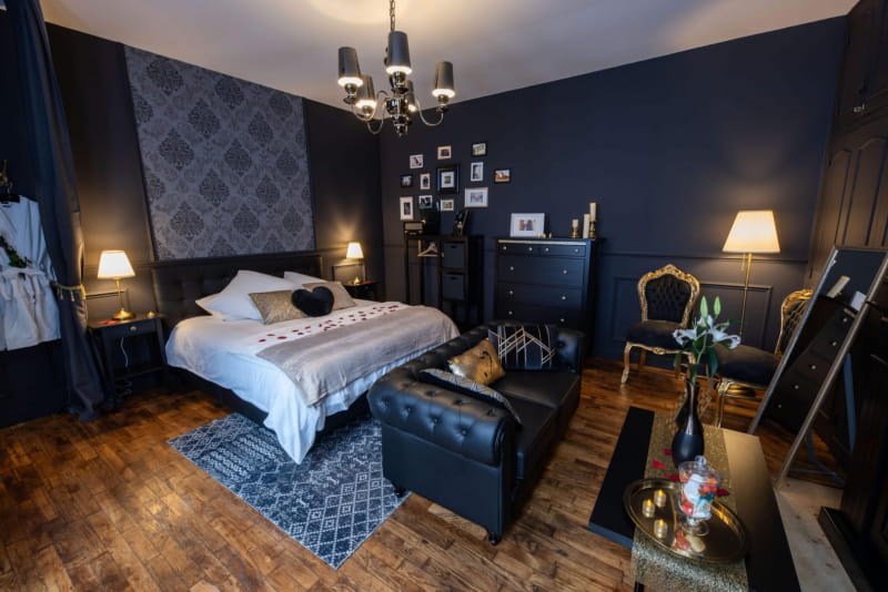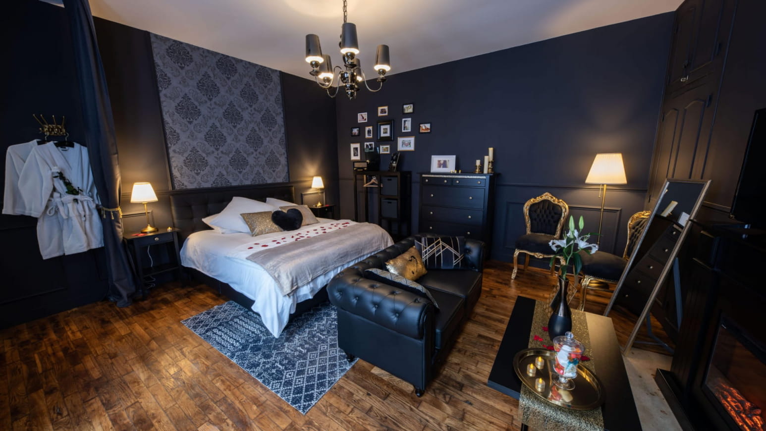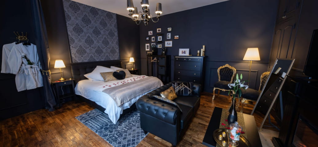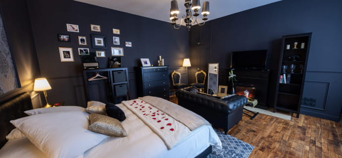 One night, two nights or even more… As soon as you arrive in your Chic apartment, you’re sure to be carried away! In this 4-star apartment, decorated in baroque gold and black, you’ll experience timeless moments! With its warmth, refinement and comfortable amenities, it’s an invitation to escape. It’s the perfect romantic getaway to recharge your batteries and enjoy a peaceful retreat.