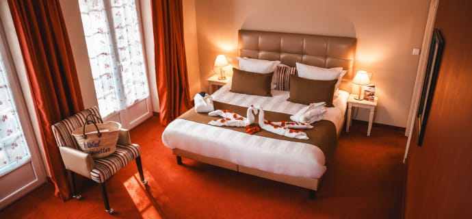 This charming hotel will win you over with its 1500m² wellness area. Sauna, hammam, jacuzzi and salt grotto are available from 3.30pm on the day of arrival to 11.30am on the day of departure. A 30-minute Californian massage is also included per person.