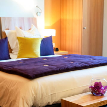 Each single, double or family room can accommodate up to 4 people, and is equipped with natural latex, cotton and organic wool bedding for a restful night's sleep. They feature a flat-screen TV with satellite channels, as well as Wi-Fi access, a safe and a welcome tray.