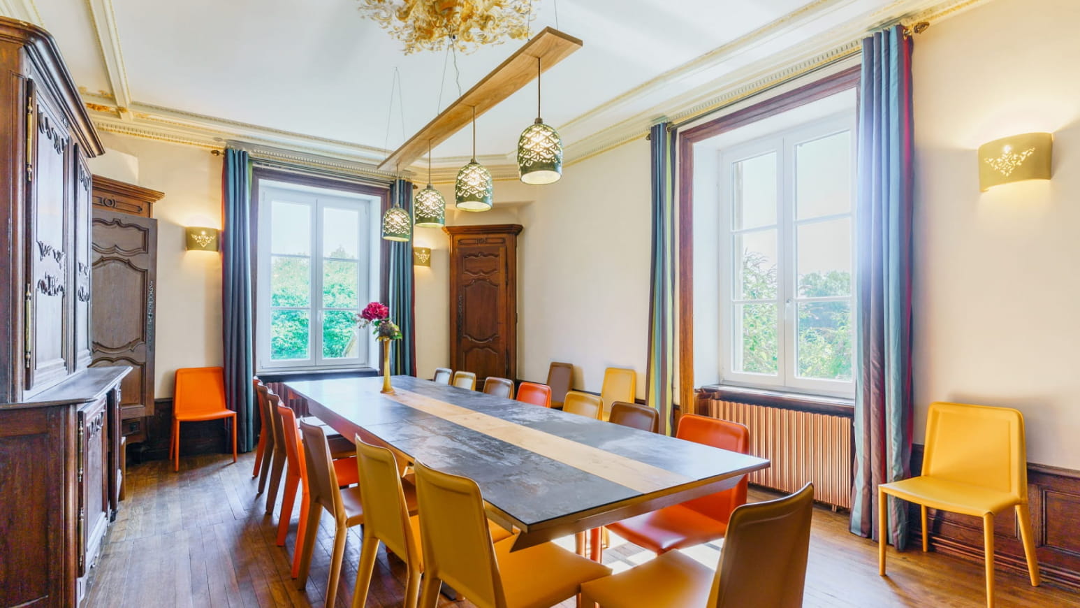 Enjoy 7 rooms, tastefully decorated in homage to renowned painters such as Van Gogh, Klimt and Monet, creating a unique and inspiring atmosphere. For your leisure time, the cellars have been completely refurbished to offer a cinema room, a spa area with sauna and jacuzzi, and a relaxation area with table soccer and darts.