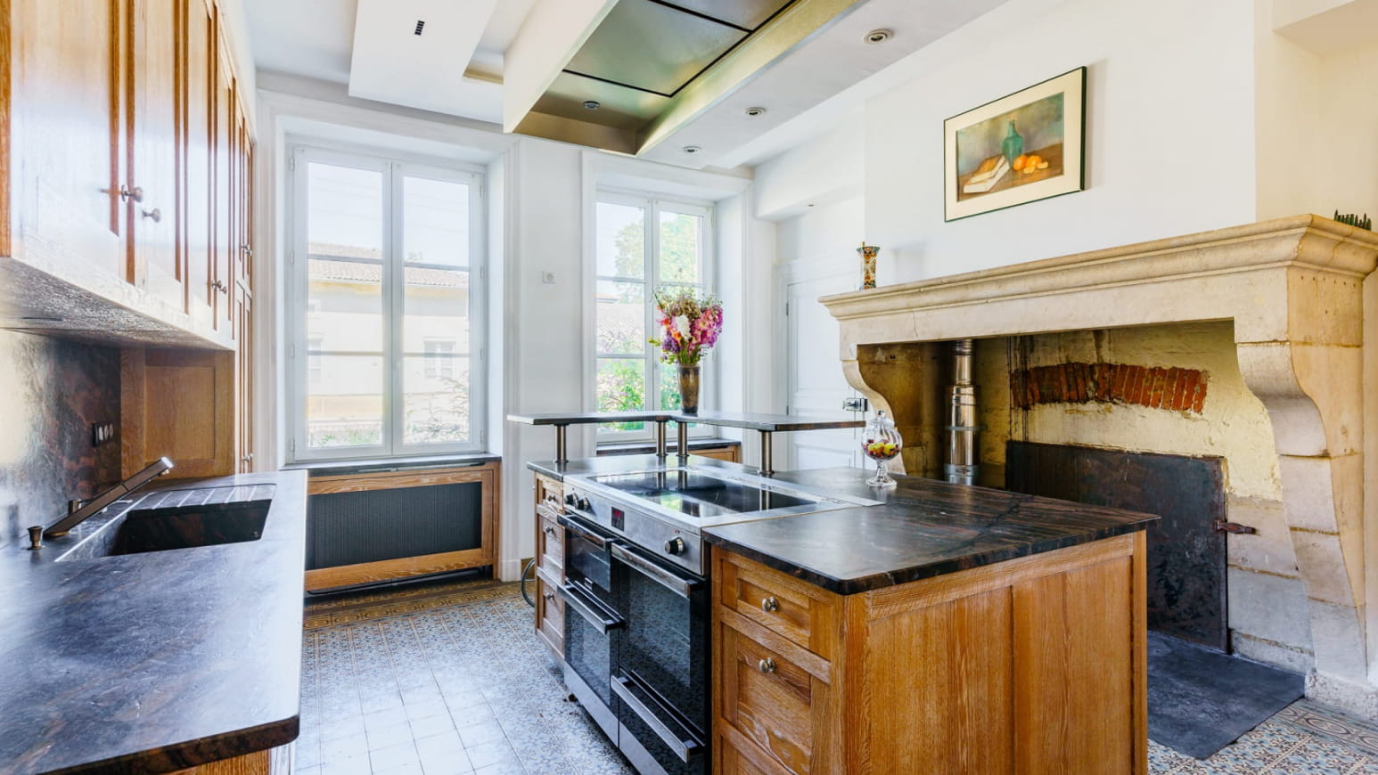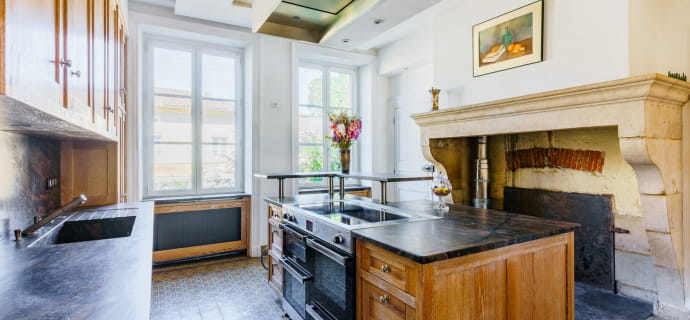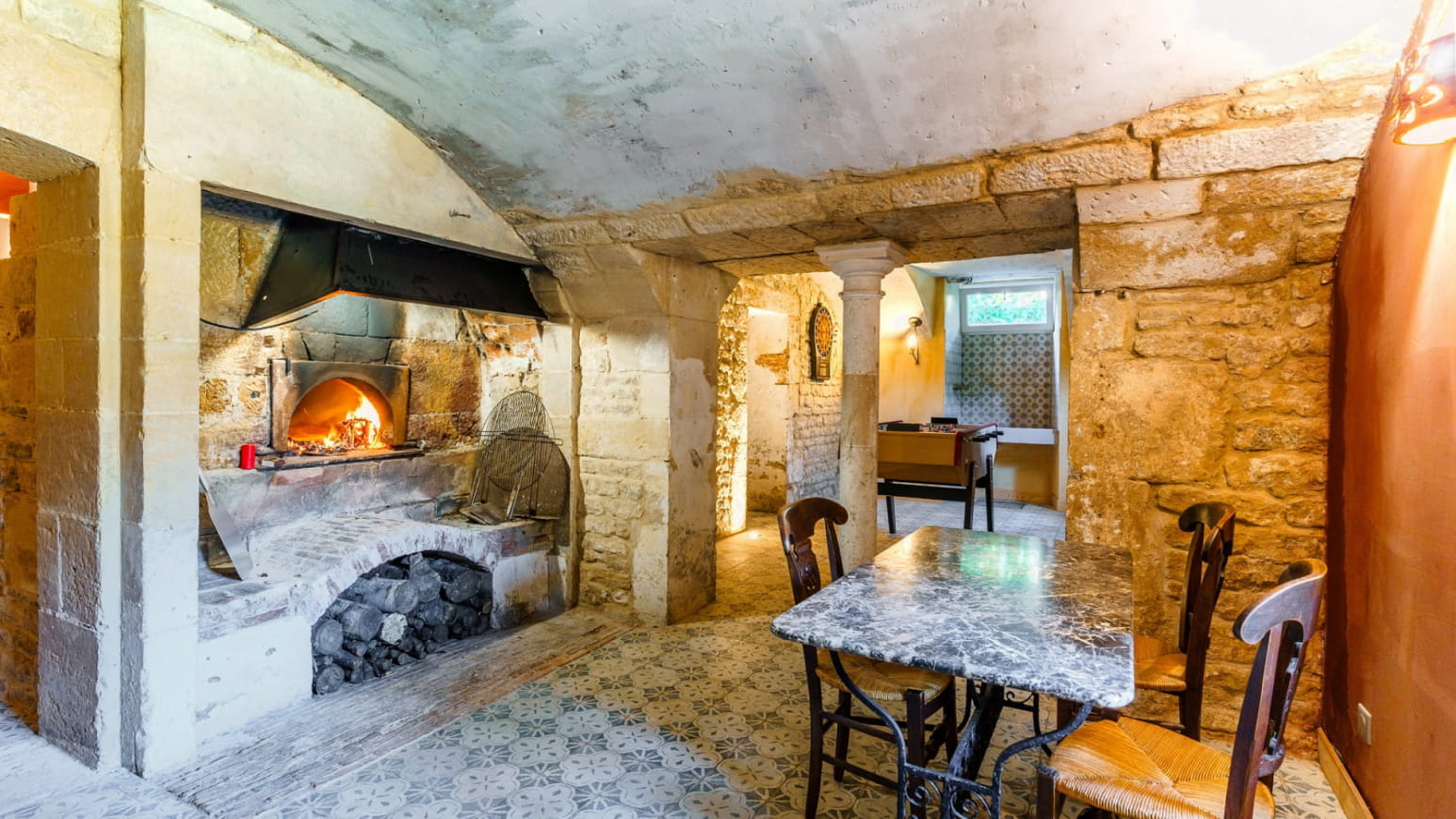 The living spaces will live up to your expectations: a fully equipped kitchen with an authentic bread oven, a vast living-dining room decorated with refinement, including a period French billiard table and a Playel piano. An elegant and refined space for music and entertainment lovers, reminiscent of the social evenings of centuries past.