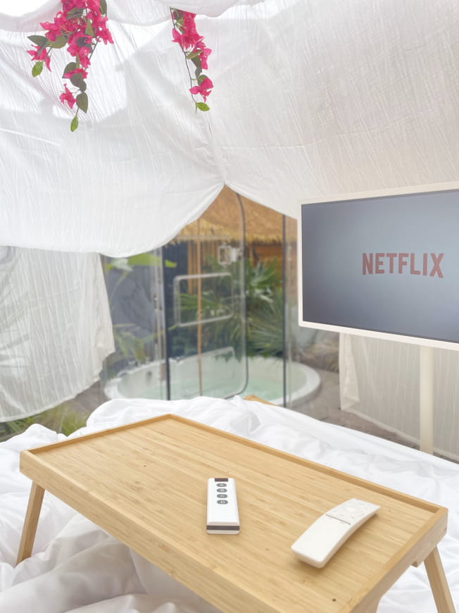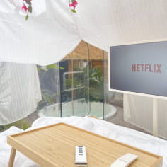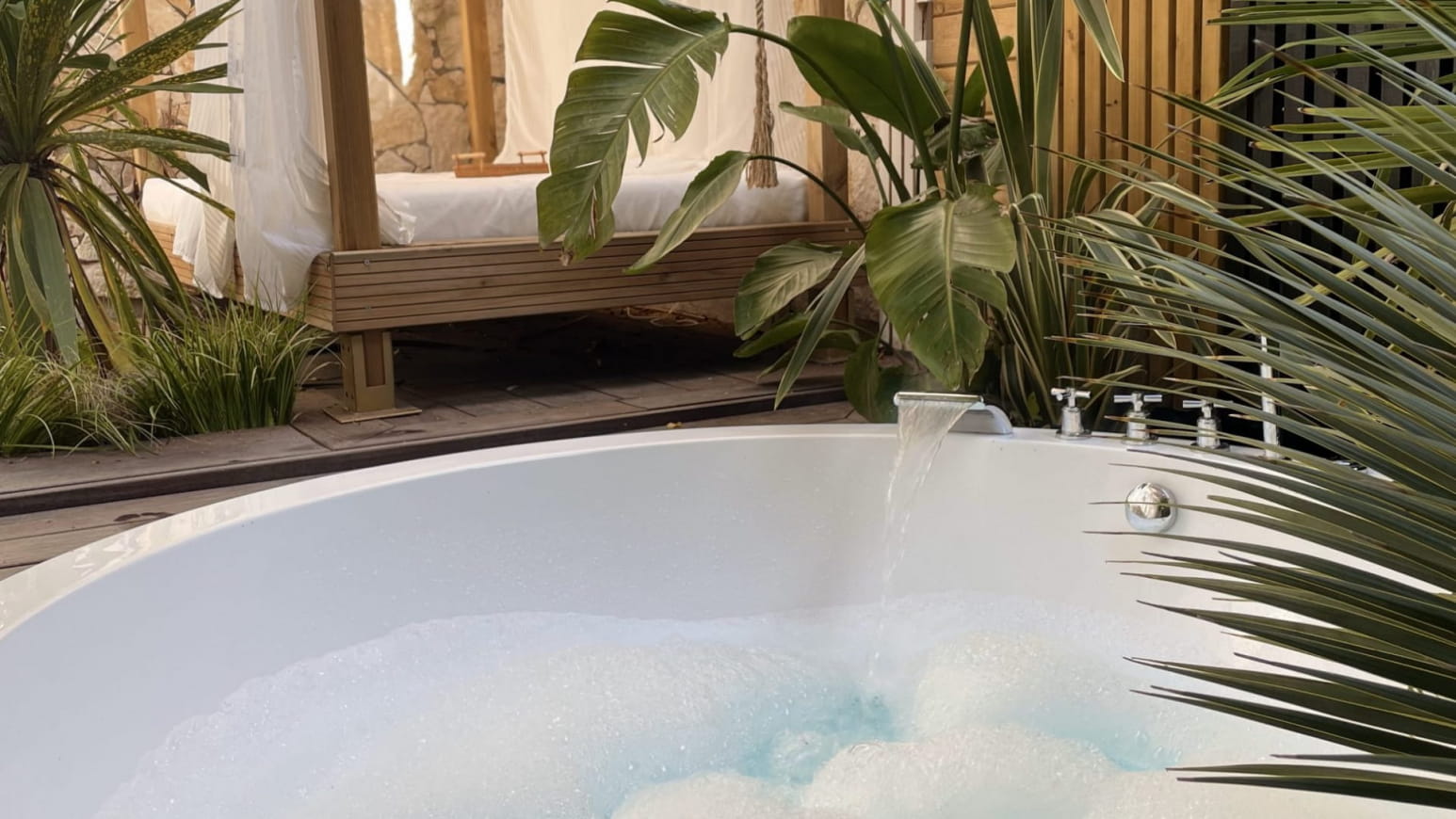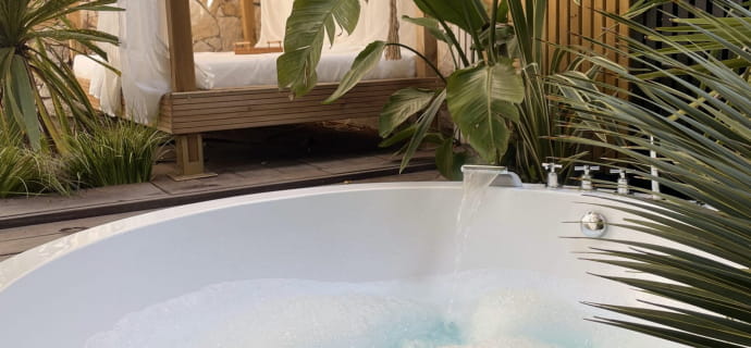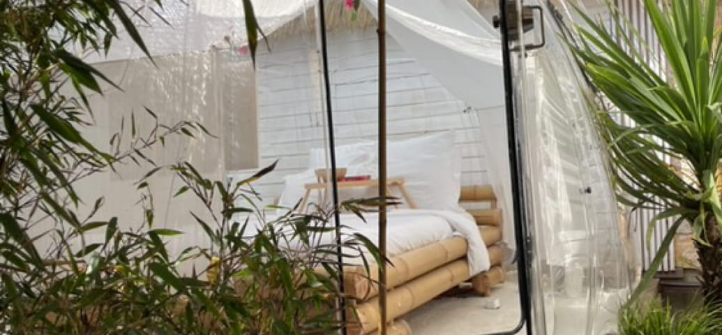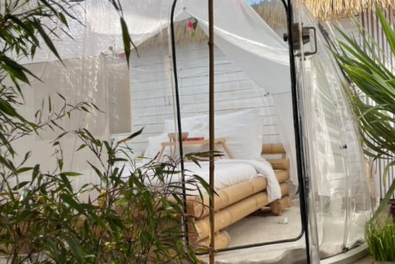 Whether you’re looking for a romantic evening under the stars or a sleepover with friends, La Bulle De Reims will enhance every moment. With a king-size bed in the bedroom, you’re guaranteed a cocooning night’s sleep, while the fully-equipped kitchen lets you prepare your own meals. For moments of total relaxation, a private Jacuzzi is nestled under the palm trees, offering you a unique wellness experience in total privacy.