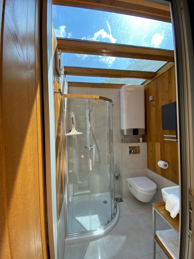 A fully equipped double bed and glass-roofed bathroom await you, and through the Zome‘s panoramic roofs, the stars will lull you to sleep. Outside, you’ll also find a private terrace where you can relax and enjoy your breakfast. Make yourself comfortable, and let yourself be carried away by the gentle scenery.