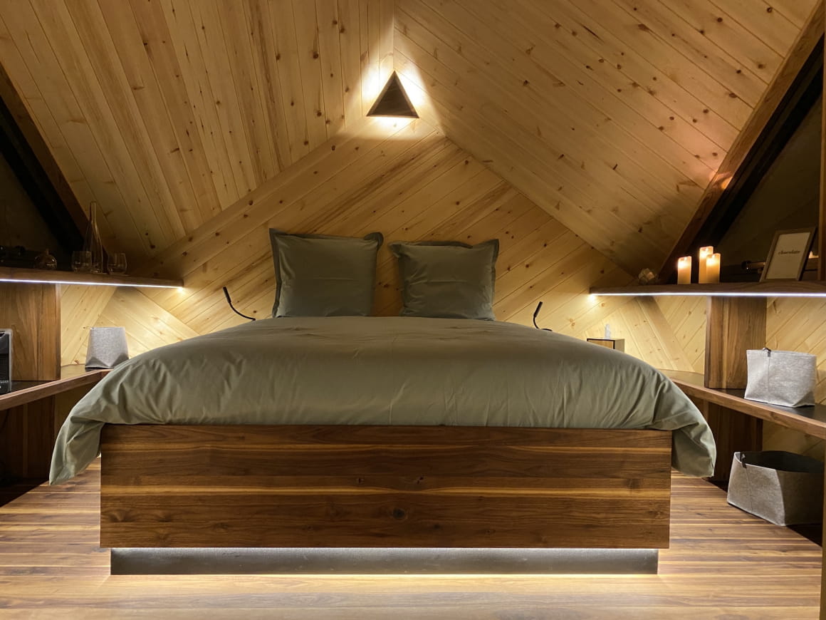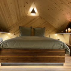 Nestled at the gateway to the Champagne region, in a beautiful green setting, La Réserve de l’Aube welcomes you to a magnificent natural setting, ideal for getting away from it all! With a capacity of 2 people, these accommodations combine comfort and originality for an exceptional getaway. These eco-friendly wood and glass constructions offer the comfort of luxury hotels.