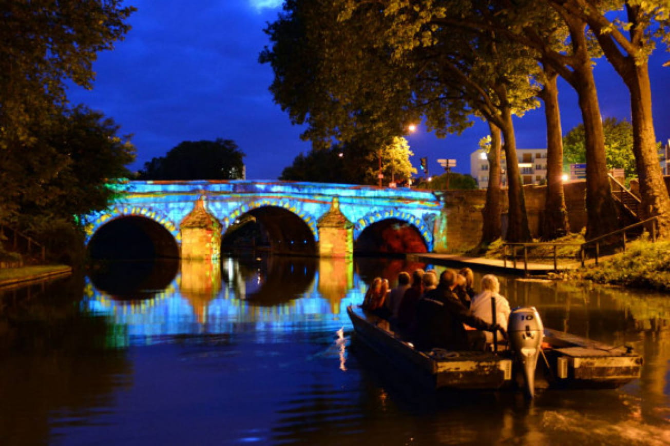 Châlons-en-Champagne Tourist Office invites you to enjoy a most unusual experience. Whether you’re a couple, a group of friends or a small family, treat yourself to a night-time cruise on the Mau and Nau rivers in an electric boat, complete with sound and light shows.