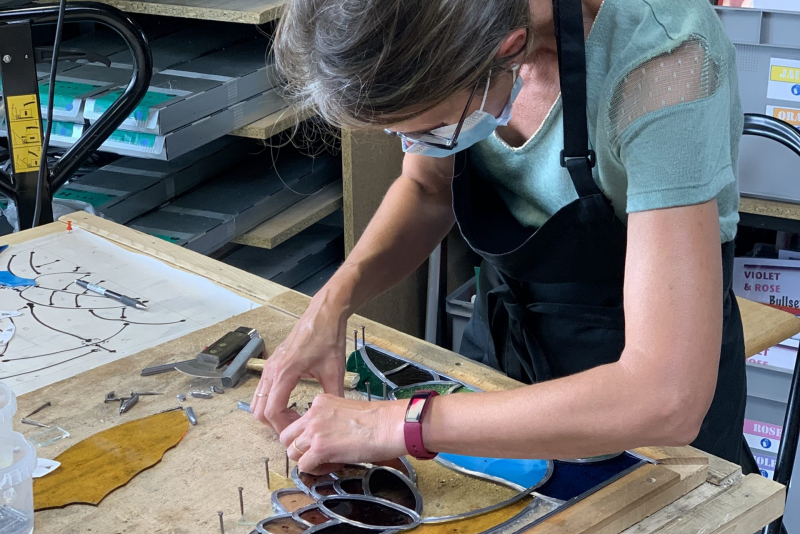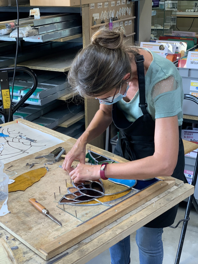 In the heart of his workshop, Stéphane introduces you to the various stages involved in making leaded stained glass. From drawing, to cutting the glass, to setting the lead, this five-day workshop is a unique opportunity to immerse yourself alongside the guardian of an ancestral know-how.
