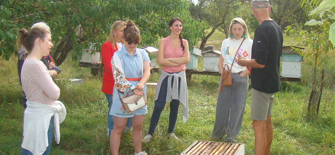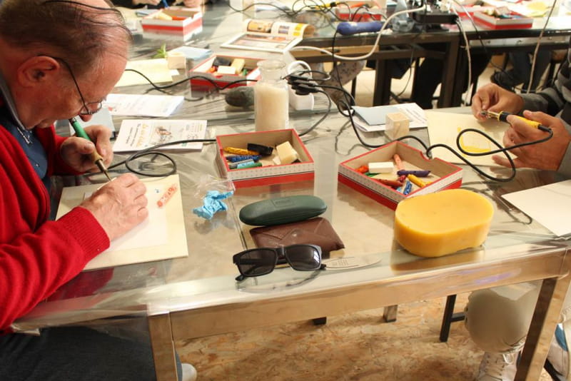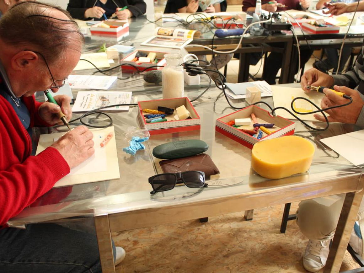 - Café d’accueil, visite d’un rucher et rencontre d’un apiculteur, présentation et démonstration de la technique de l’encaustique, pratique individuelle assistée
