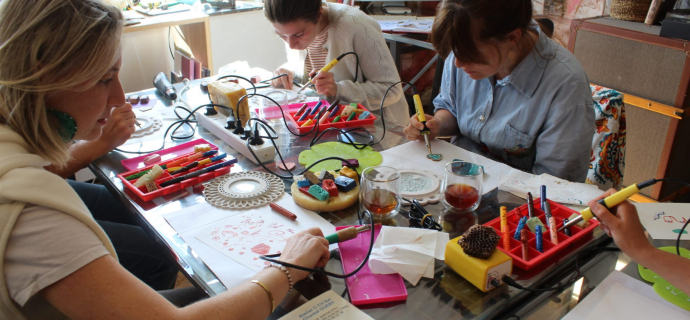 Chantal Guery organizes various activities around beeswax: discovery workshops for glass or wax, and ecotourism outings with hands-on art experience for participants. The artist works with flashlight glass, Murano glass and encaustic, creating paintings, sculptures and much more!