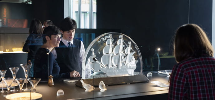 Finally, because all these objects would not exist without their know-how, tribute is paid to the women and men who perpetuate the glassmaking tradition. It is possible to discover their work in particular through a tactile table dedicated to the Bacchantes vase which traces the manufacture of this piece created in 1927. From the mold to the finished vase, the visitor can see short films on each step of the process and experience the changes made to the material by touch.