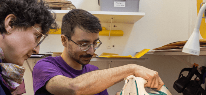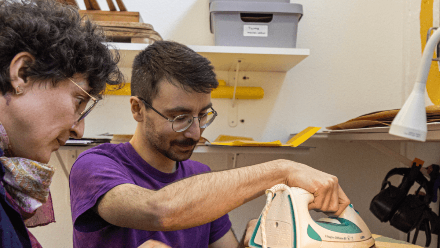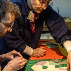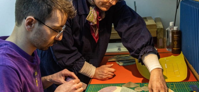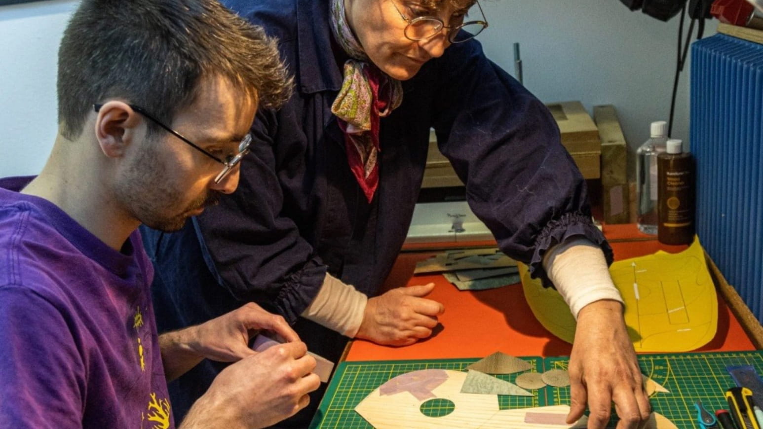 You’ll learn how to cut out the various wood elements with a scalpel, then assemble them meticulously to form your decor. Once assembled, you’ll glue your inlaid decoration to the stool seat using an iron, before sanding and applying a finishing wax. The workshop takes place in Nathalie Melon’s workshop at the Cité du Faire, Manufacture de production in Jarville-la-Malgrange.
