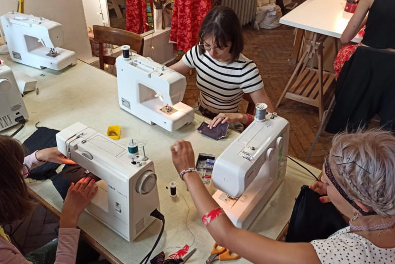 All year round, in her workshop, she offers sewing and creative embroidery courses and workshops for beginners and more advanced students, adults, teenagers and children.
