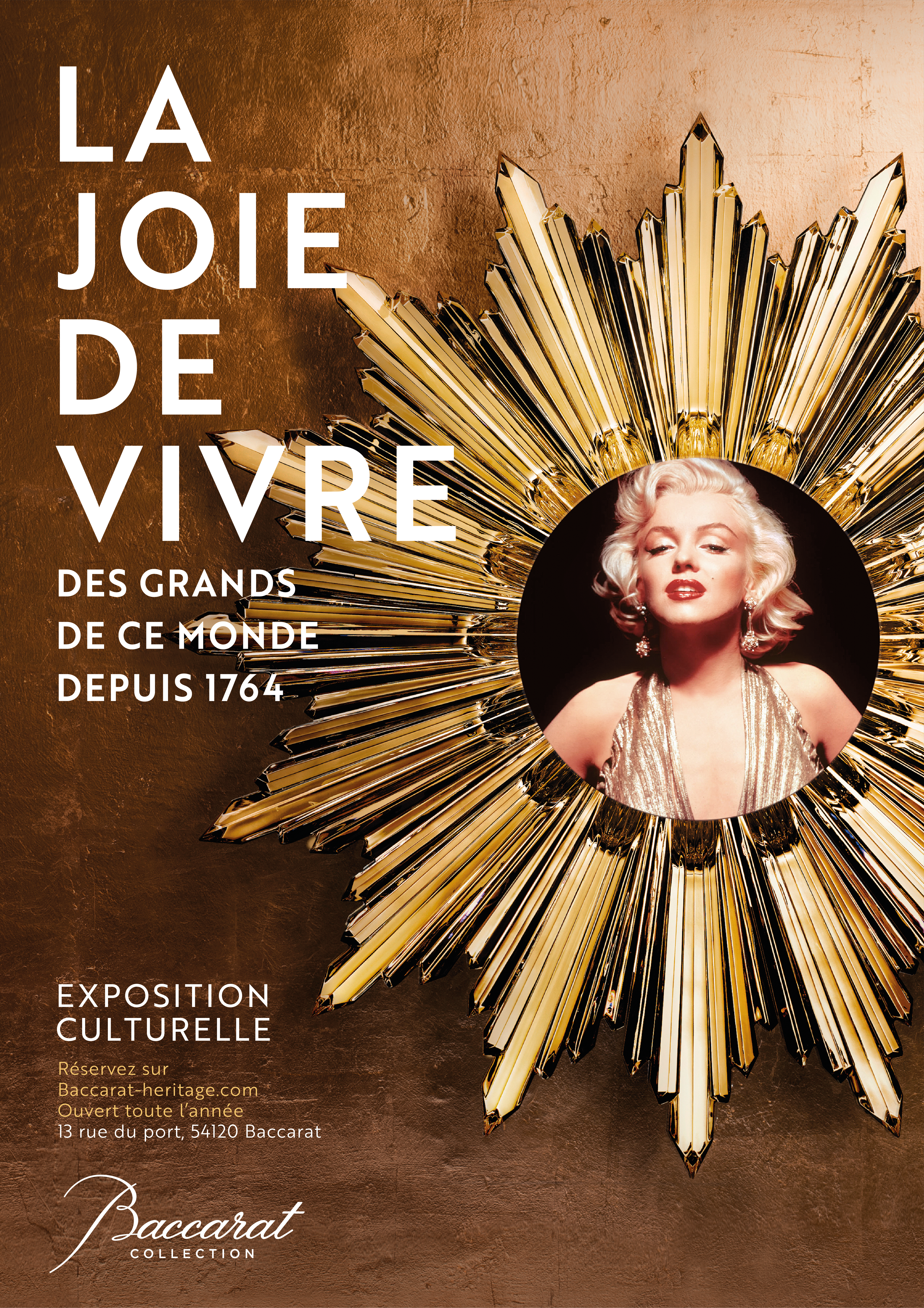 The exhibition « La joie de vivre des grands de ce monde depuis 1764 » invites you to step back in time. Exceptional perfume bottles from the George Stam collection, royal dinner services, majestic lighting fixtures… Each piece tells a story of elegance and celebration. From Empress Eugénie to Karl Lagerfeld, via Marilyn Monroe and Josephine Baker, marvel at the aura of celebrities whose daily lives were illuminated by Baccarat.