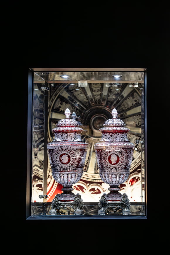 "Collection Baccarat" showcases the exhibition "La joie de vivre des grands de ce monde depuis 1764" with over 600 works, including exclusive pieces from George Stam's collection of perfume bottles. This artistic journey plunges visitors into a tale of memorable celebrations and moments of everyday happiness. Featuring pieces that belonged to over 70 personalities, the tour reveals how crowned heads, celebrities, film stars, fashion icons and music stars have chosen to celebrate life in Baccarat right up to the present day.