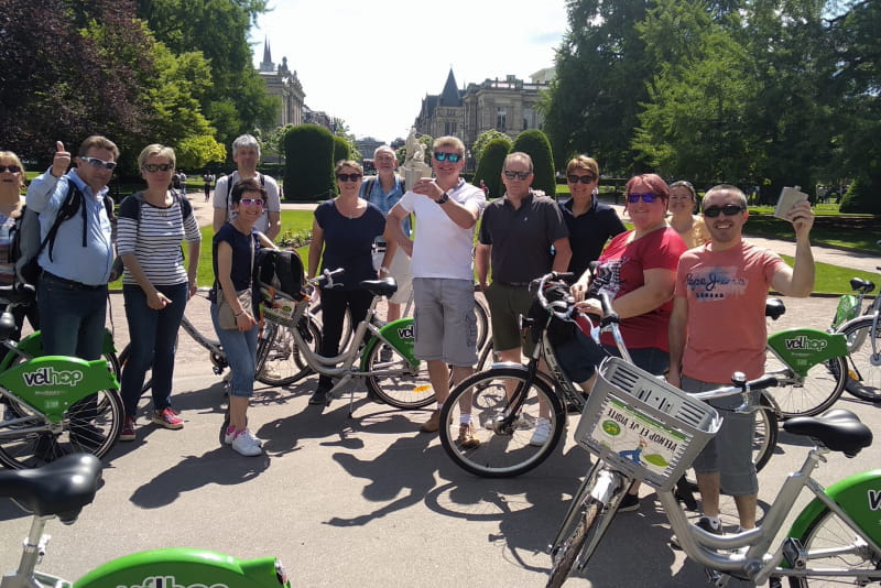 Meet at Place d’Austerlitz for a 2.5-hour ride of around 8km. You’ll start by discovering the historic district, with its Cathedral and Petite France, renowned the world over for its Alsatian authenticity. You’ll then continue on to the Neustadt district, an essential testimony to the Germanic imprint on the city during the cession of Alsace-Moselle. Part of the district has been a UNESCO World Heritage Site since 2017. Finally, discover the European Quarter and its institutions.
