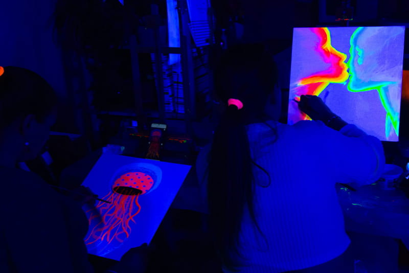 Give free rein to your creativity with Peinture dans le Noir, a unique artistic activity offered by L’Atelier de Lou in Reims. For 1h30, immerse yourself in a subdued atmosphere where the black light reveals the brilliance of fluorescent paints.