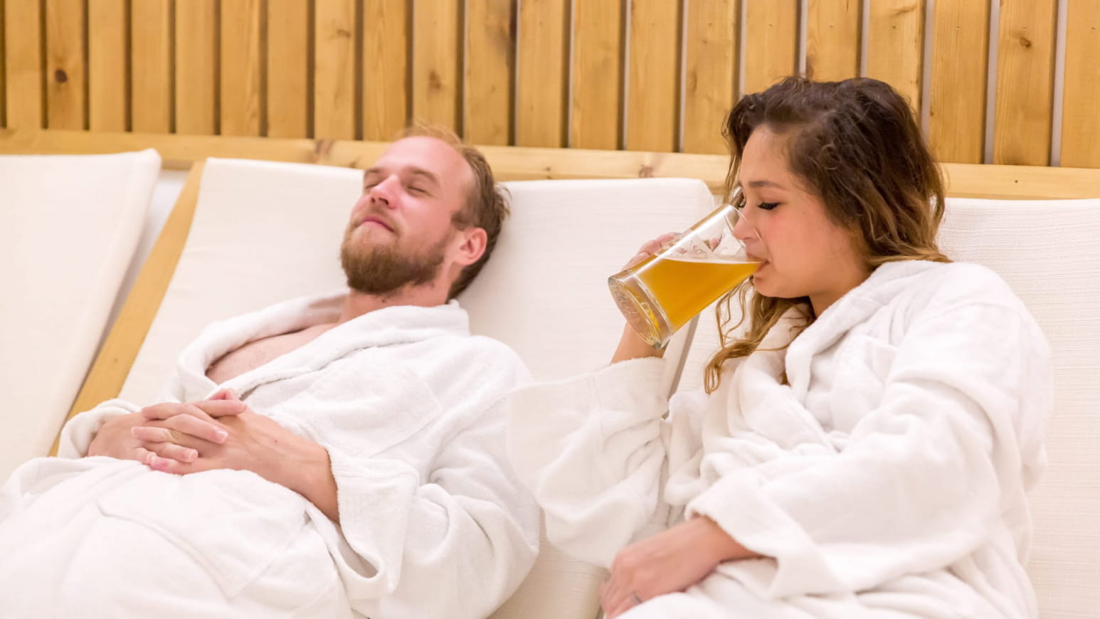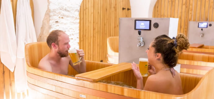If you need privacy, you can reserve a private area. With the Baignoire Solo offer, you can visit the sauna area for a 15-minute session. Then immerse yourself in a unique beer bath for 30 min or 1 hour. Immerse yourself in a foaming, bubbling bath that dissolves the ingredients and releases the vitamins, carbohydrates and proteins of the hops, malt and brewer’s yeast. You’ll enjoy an unforgettable sensory experience and the benefits of these ingredients for your body. Afterwards, you can relax for 15 minutes in the relaxation room, where beer and bathrobes are available.