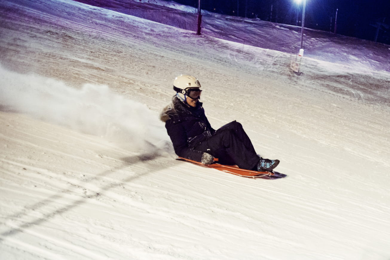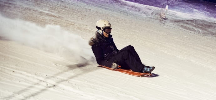 Mandatory equipment: helmet and plastic sled with 2 brakes.