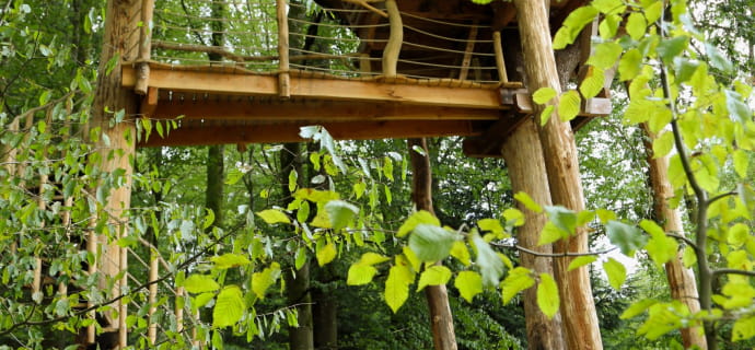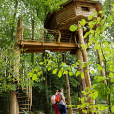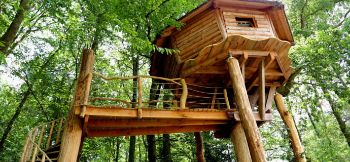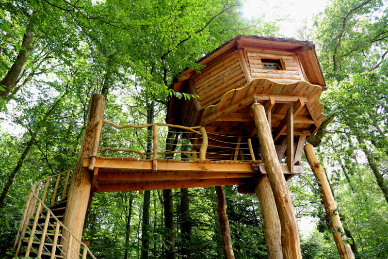 The Cabane du Barde welcomes you in an unusual setting, perched 6m above the ground, to spend unforgettable moments with friends, family or lovers. It's a tree house perched in the trunk of a very old oak tree. With its round shape, untreated natural wood frames and thatched roof, your childhood dream comes true. To get to the Bardes hut, you have to take a suspension bridge, also made entirely of wood. Beware of vertigo - it's sure to impress!