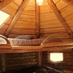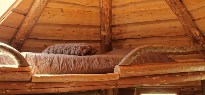 You'll find yourself in an elevated refuge with the comfort and safety of a well-maintained hut. La Cabane du Barde sleeps 4. Sleep in this cozy cocoon and let yourself be transported into another universe. Apart from the small windows that let in natural light, you'll need a flashlight for illumination. That's the charm of this unusual accommodation!